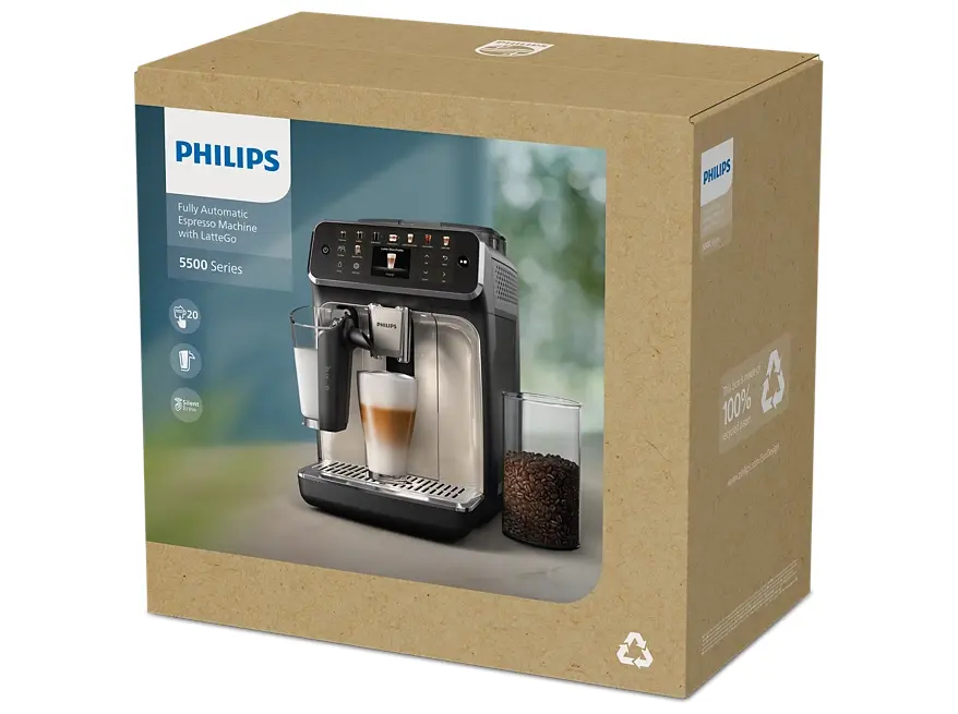 Produktbeskrivelse Philips 5500 series EP5541 - automatisk kaffemaskine med mælkeskummer - 15 bar - blank sort