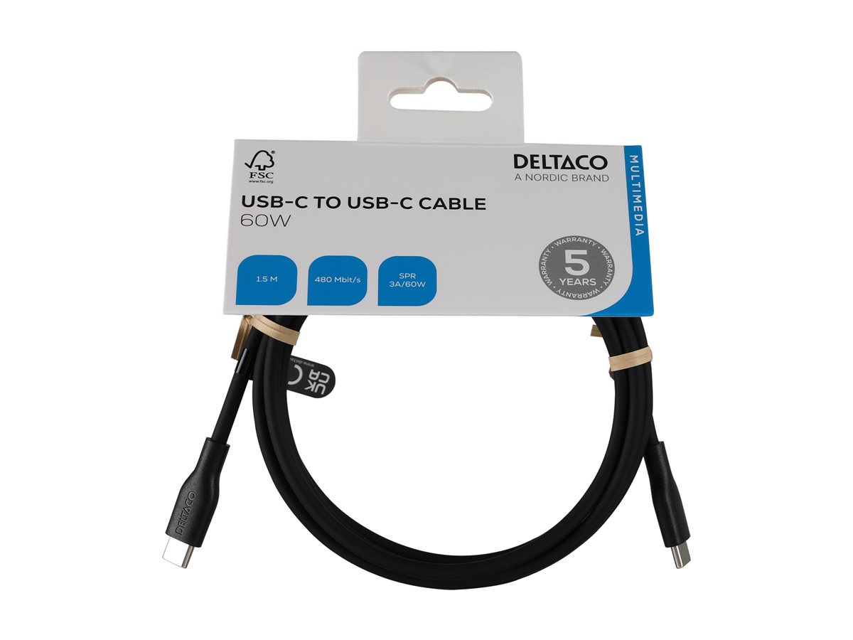 DELTACO - USB-kabel - USB-C (han) til USB-C (han) - USB 2.0 - 3 A - 1.5 m - SPR - sort
