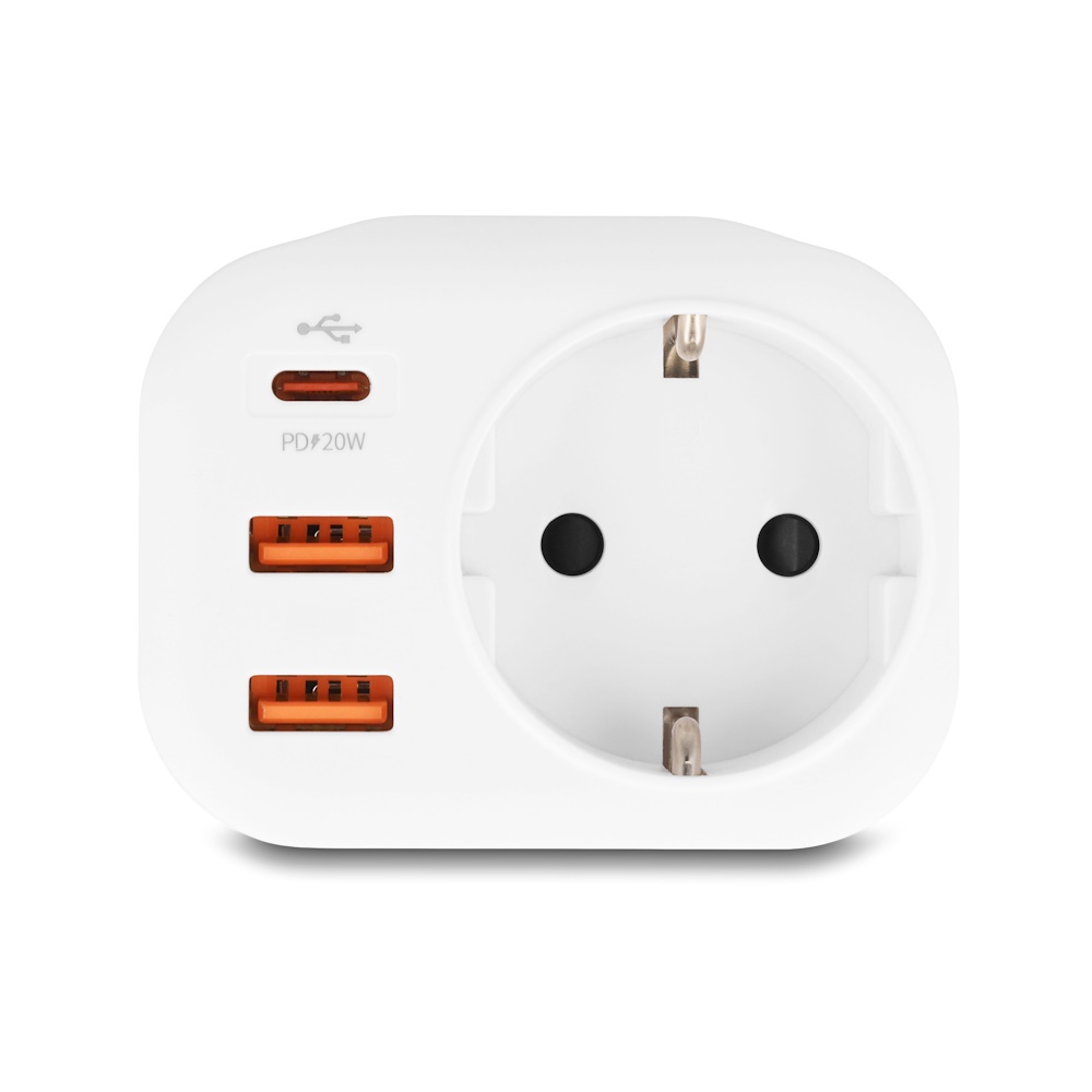 Delock Stikadapter med USB - 16.0 A / 250 V gennnemgang - 20W USB ladeeffekt - med børnesikring