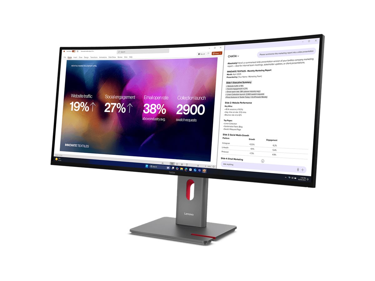 ThinkVision P40WD-40-skærmen giver moderne produktivitet et stort boost med en bred skærm med høj opløsning, der giver større visuel klarhed og effektivitet. Med avancerede værktøjer, der understøtter multitasking, intelligent strømstyring og alt-i-én-tilslutning, er det en problemfri hub for dit arbejdsområdes økosystem – forbedret af Lenovos intuitive skærmstyringssoftware.