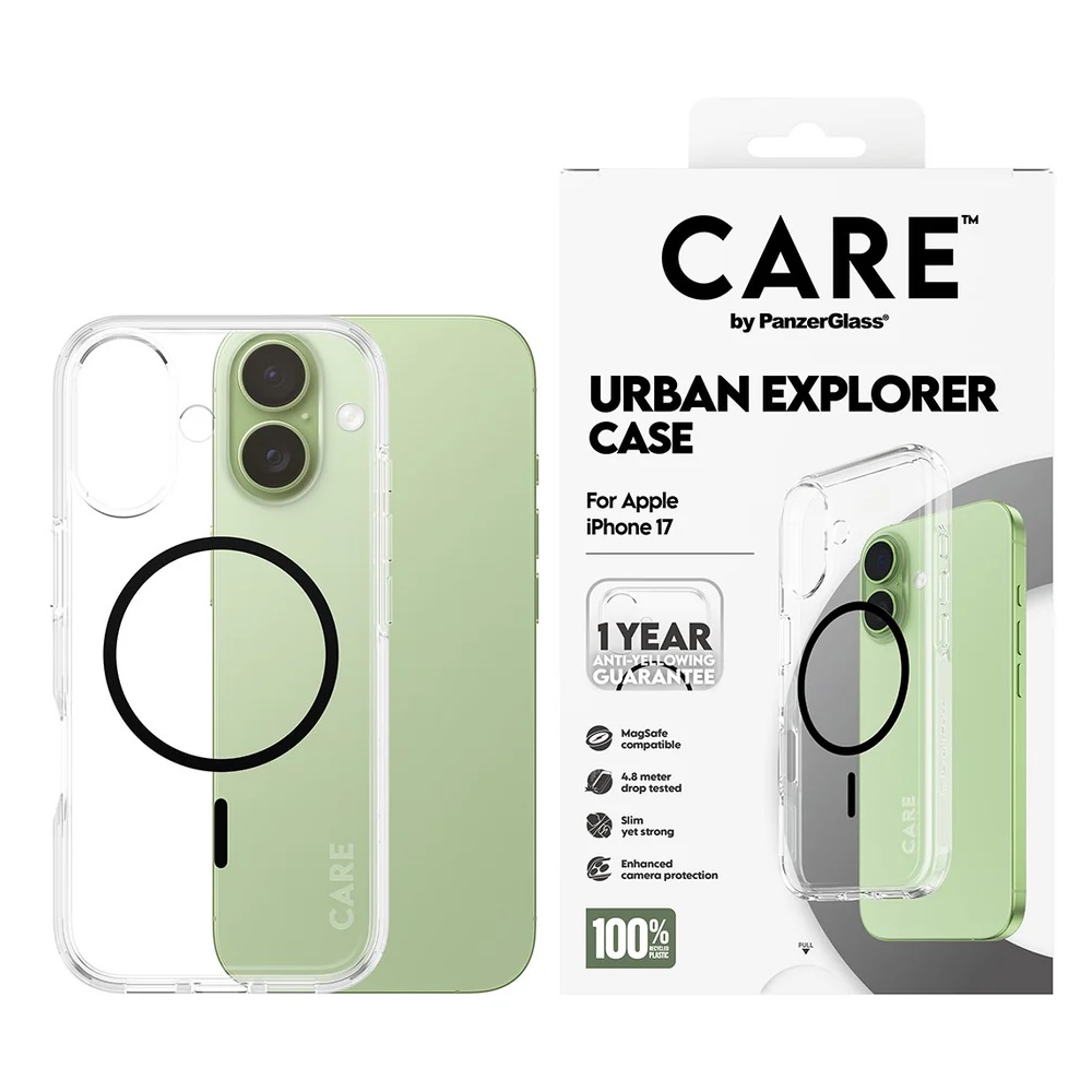 CARE by PanzerGlass Flagship Case - Beskyttelsescover - MagSafe kompatibel - passer til: iPhone 17 - Transparent/Sort
