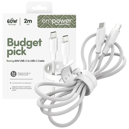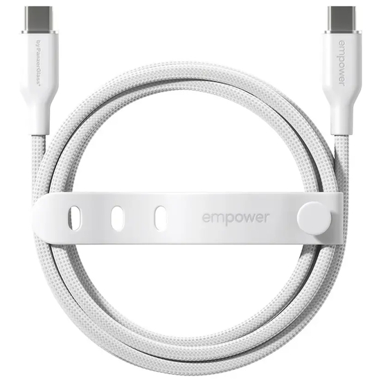 empower by PanzerGlass Racing - USB-kabel - USB-C (han) til USB-C (han) - 2 meter - 60 Watt - hvid