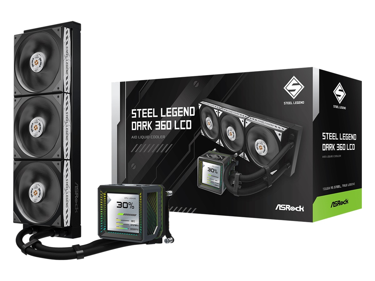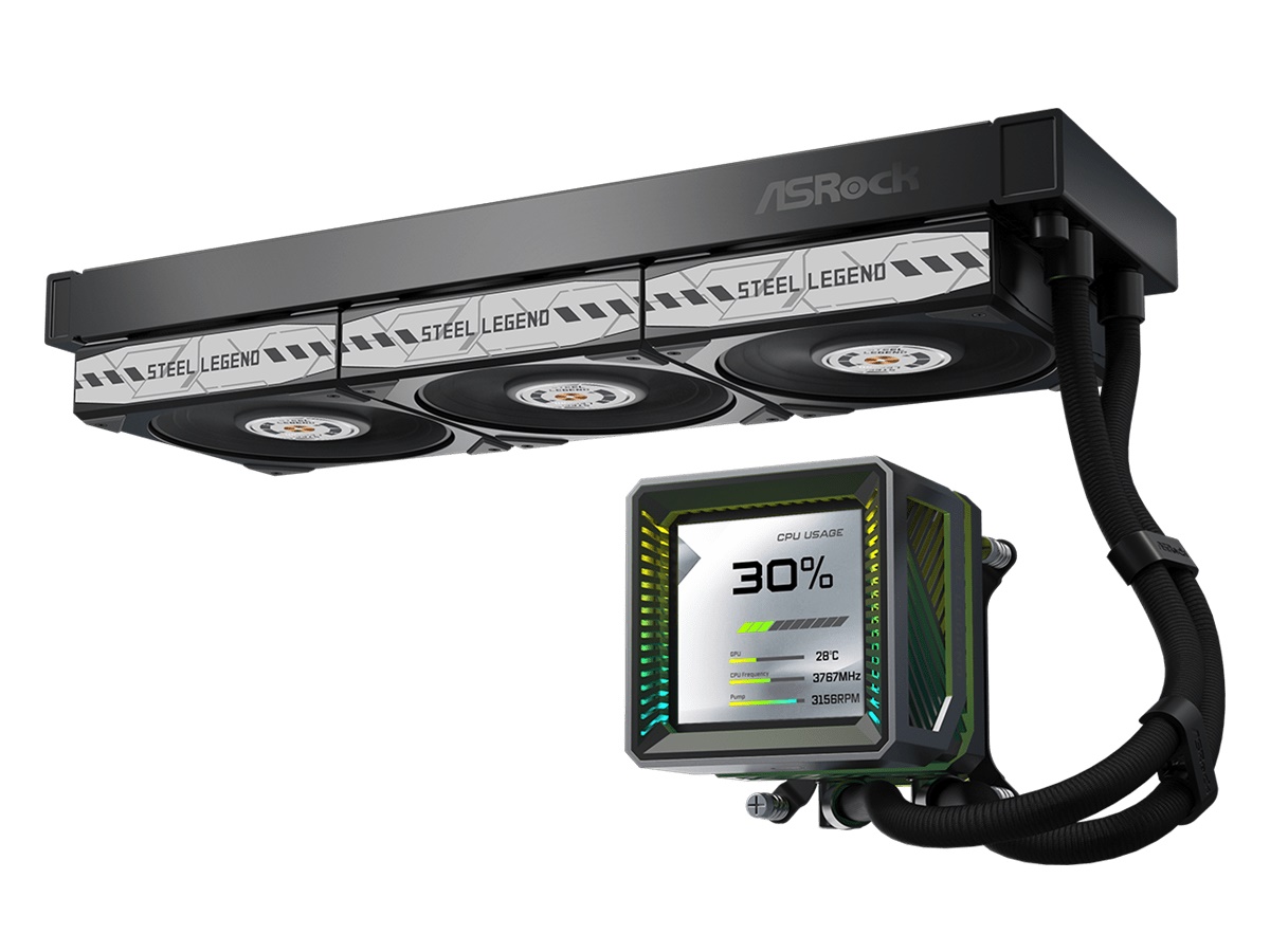 ASRock Steel Legend 360 LCD - Processors flydende kølesystem - (for: AM4, LGA1700, AM5, LGA1851) - 120 mm - sort
