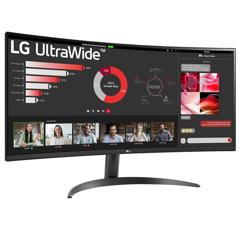 LG 34WR50QK-B - kurvet - 34" - VA - 3440 x 1440 @ 100 Hz - 300 cd/m² - 3000:1 - 5ms - 2xHDMI, DisplayPort - 100Hz - sRGB 99% - 8bit