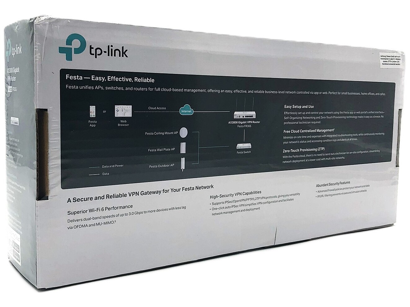 | Produktbeskrivelse | TP-Link Festa FR365 V1.2 - trådløs router - Wi-Fi 6 - desktop, væg-monterbar |