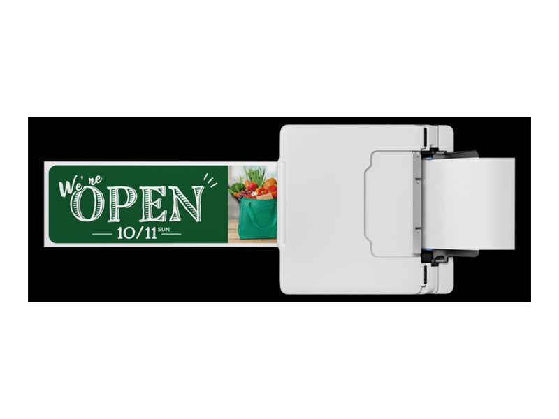 Print brochurer, bannere og plakater in-house takket være kompatibilitet med en lang række materialer, herunder magnetiske medier og fotomedier, samt en flad bageste bakke, der understøtter tykkere medier og kort.