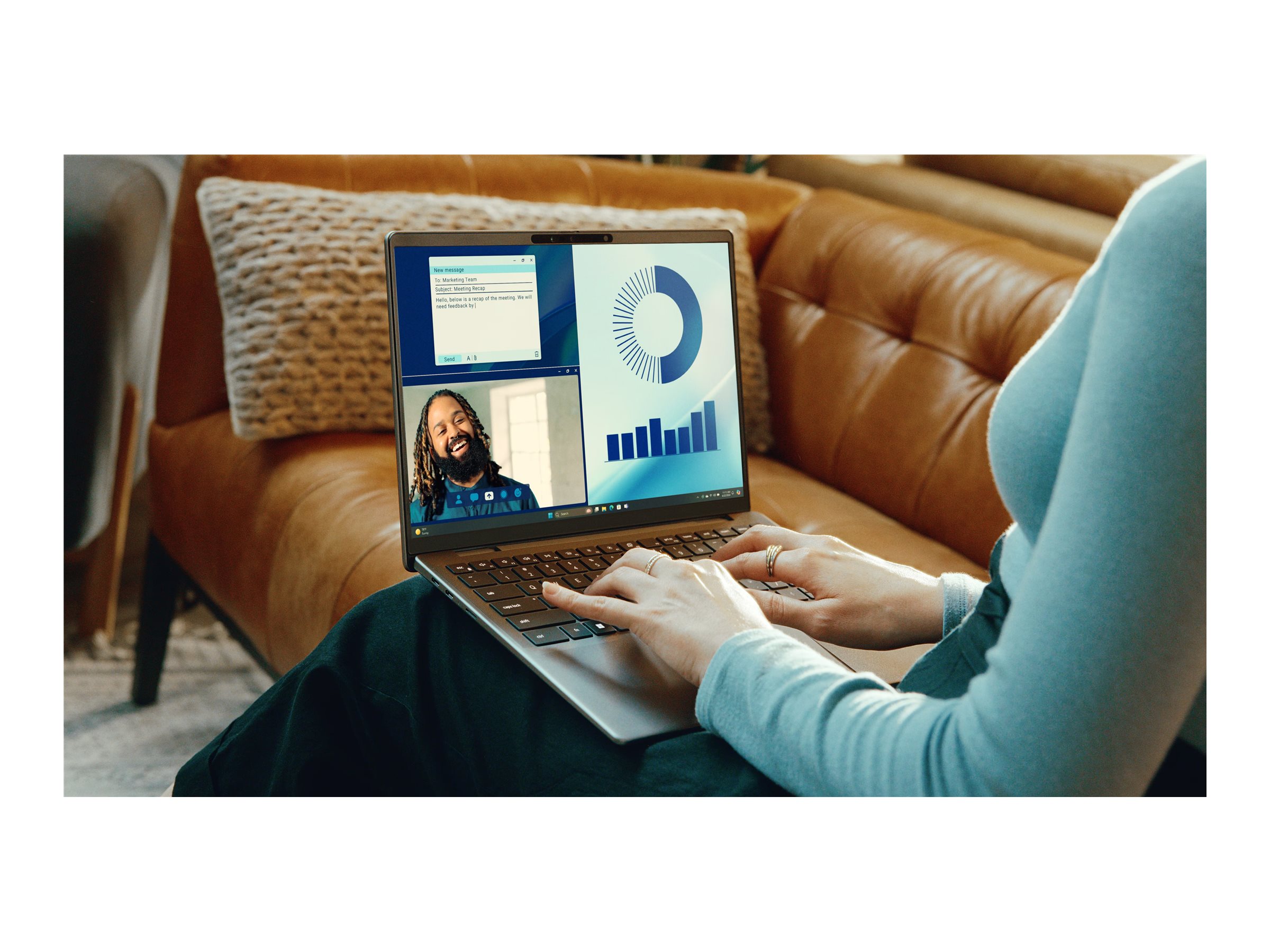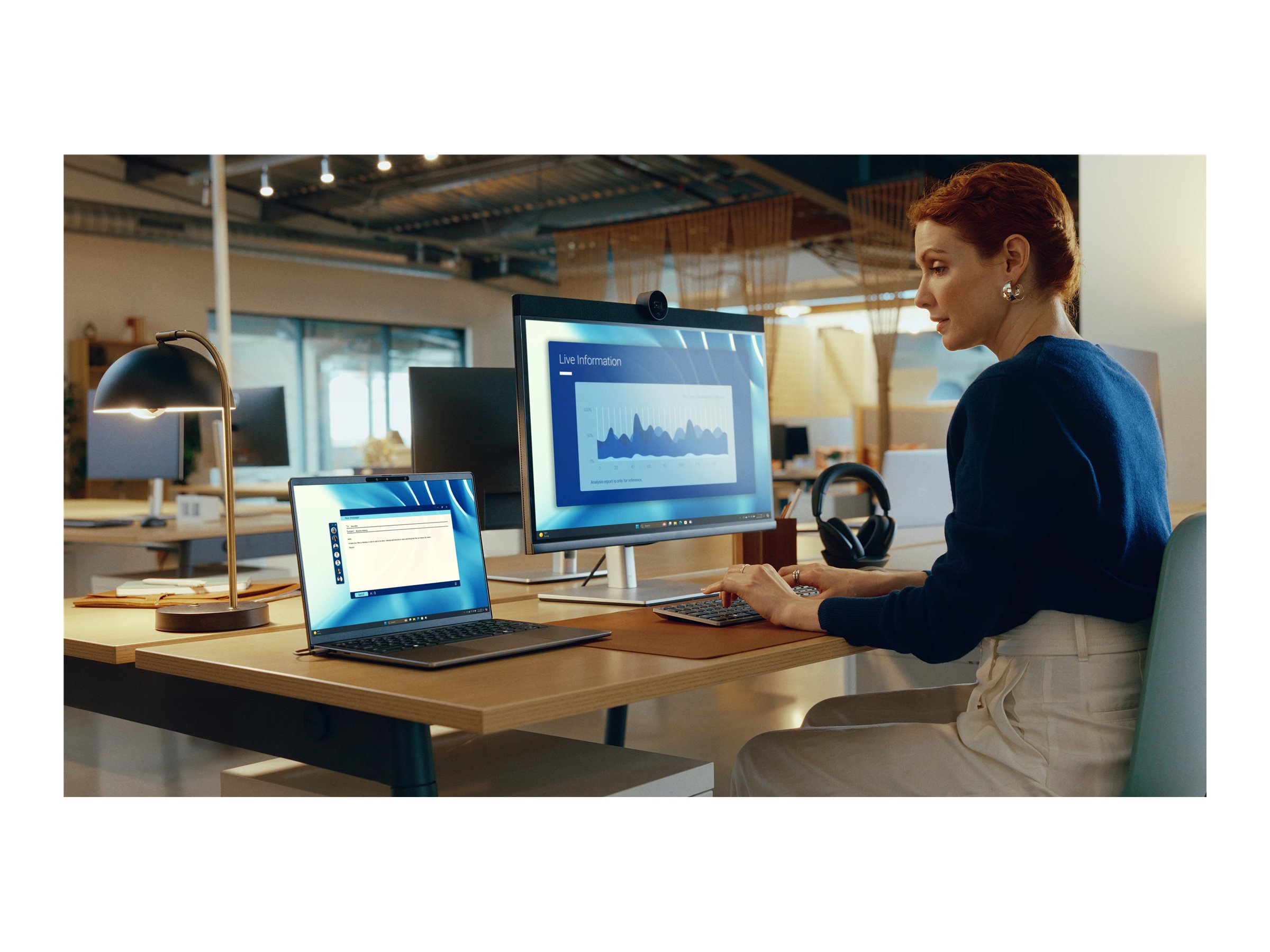 LED-bredskærmen på Dell Latitude 7455 kombineret med et Full HD-webkamera med 30 billeder pr. sekund giver levende billeder og klare, jævne videoopkald, hvilket forbedrer din visnings- og kommunikationsoplevelse.