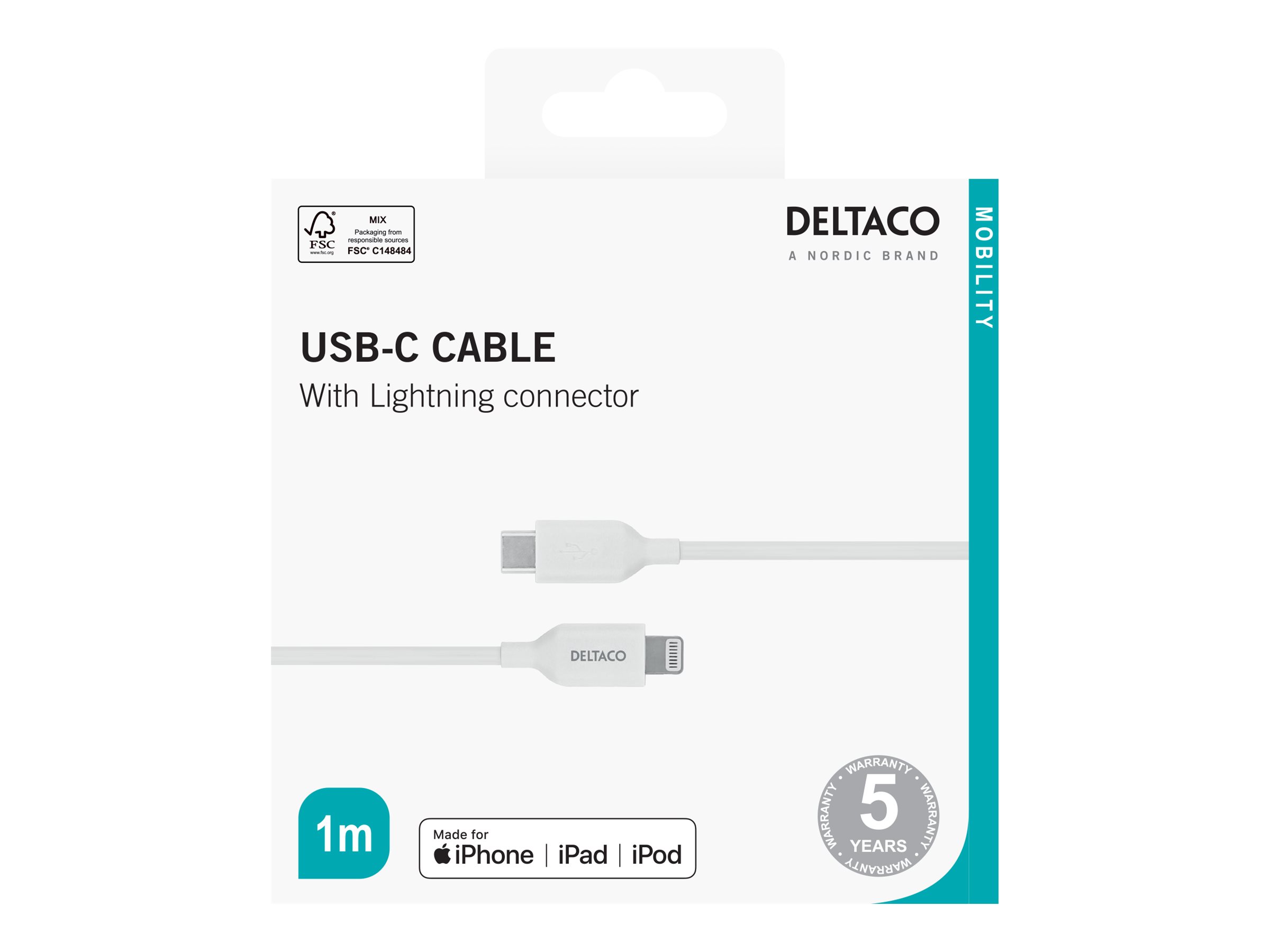 | Produktbeskrivelse | DELTACO Lightning-kabel - Lightning / USB - 1 m |