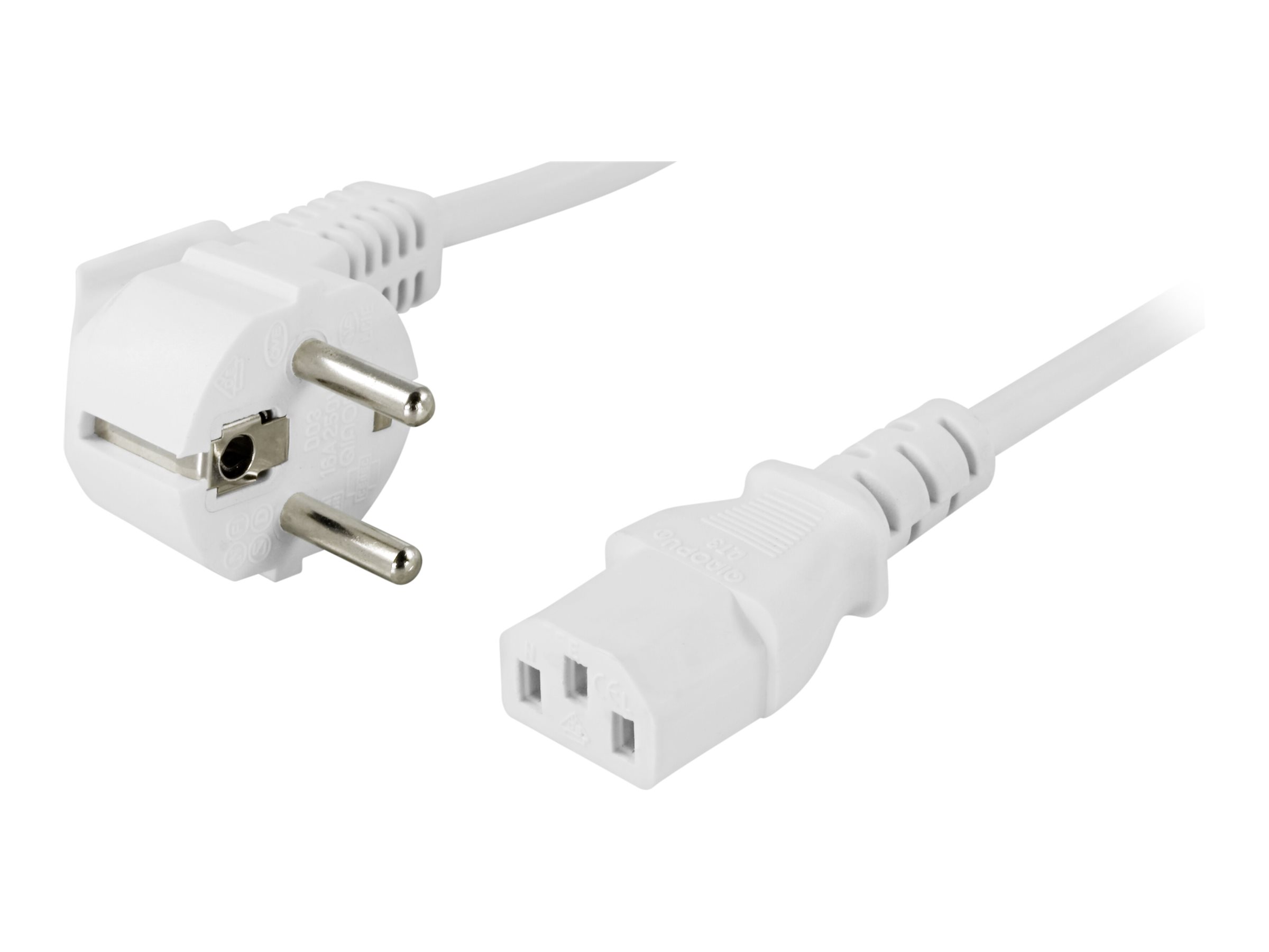DELTACO apparatkabel, vinklet CEE 7/7 - ret IEC enhed og vægudtag,vinklet CEE 7/7 til ret IEC 60320 C13, maks 250V/10A, 0,5m, hvid.