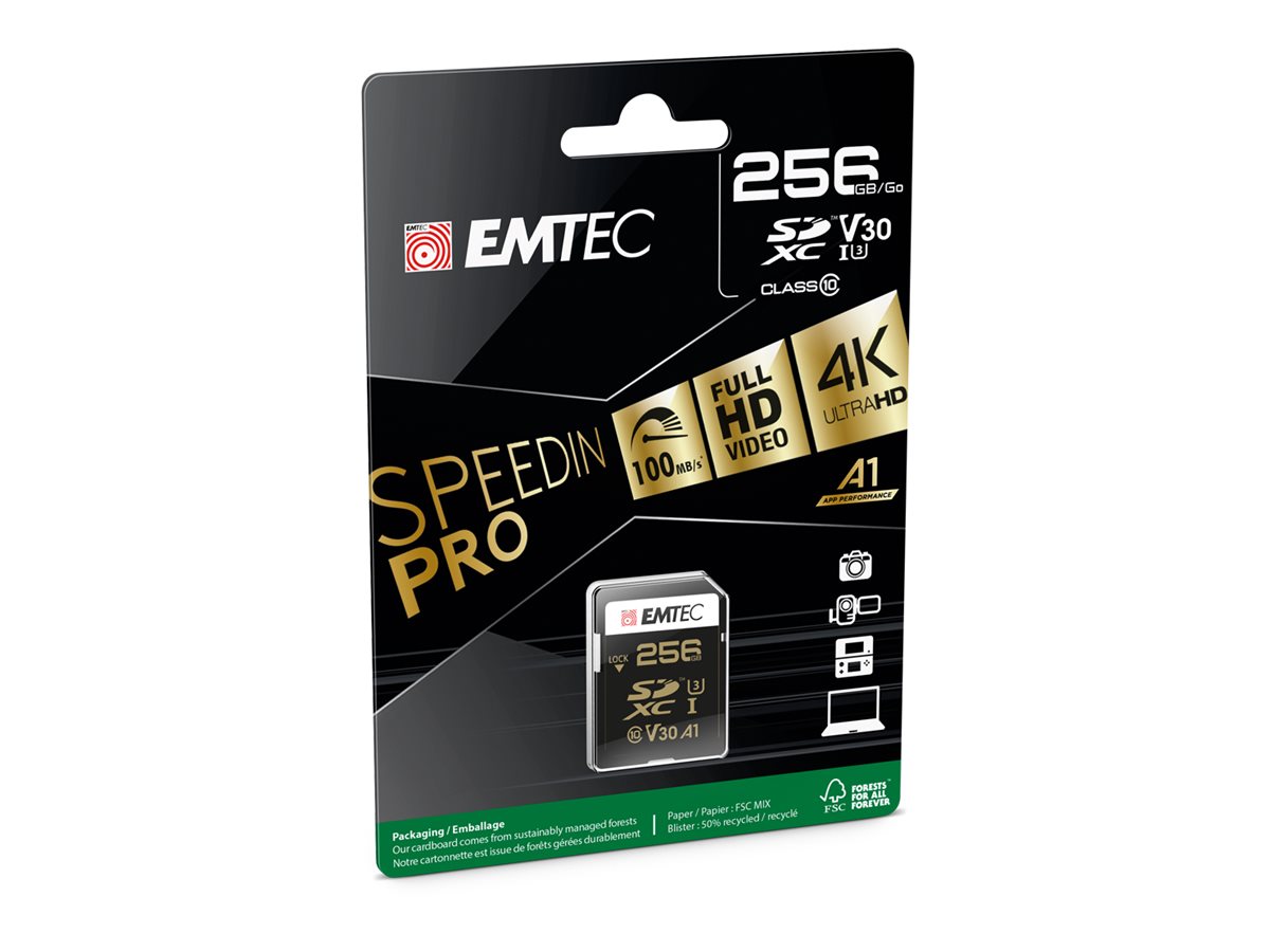 | Produktbeskrivelse | EMTEC SpeedIN' PRO - flashhukommelseskort - 256 GB - SDXC |
