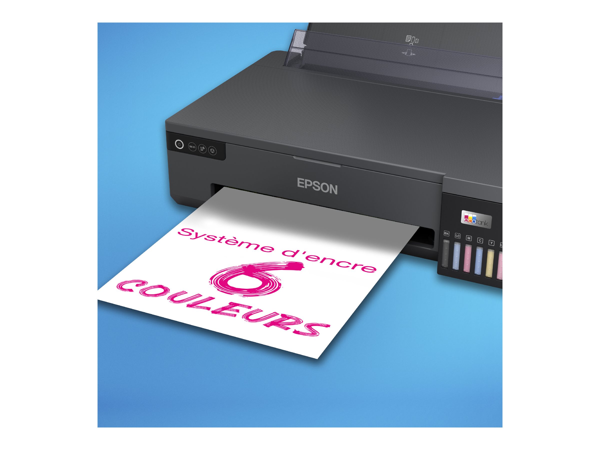 Et integreret, frontvendt blækbeholdersystem til omkostningseffektive fotoudskrifter. Blækbeholderen med stor kapacitet, der bruger 70 ml blækflasker, kan udskrive op til 2.100 kvalitetsfotos i farve i 10 x 15 cm fra et sæt udskiftelige blækflasker. Genopfyldning af blæk er hurtig og nem takket være nøglelåseflasker med drypfrie dyser.