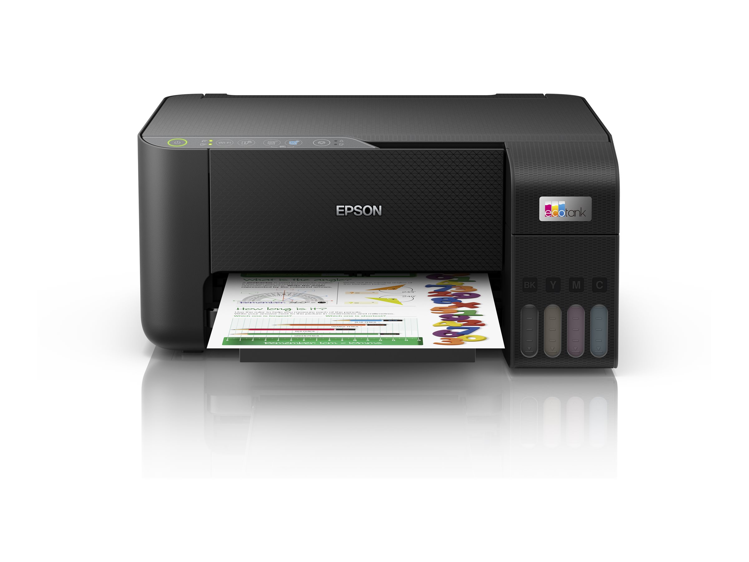 | Med forbrugsartikler | 2 x blækflaske (sort) - op til 8100 sider | 1 x blækflaske (cyan) - op til 6500 sider | 1 x blækflaske (magenta) - op til 6500 sider | 1 x blækflaske (gul) - op til 6500 sider |
