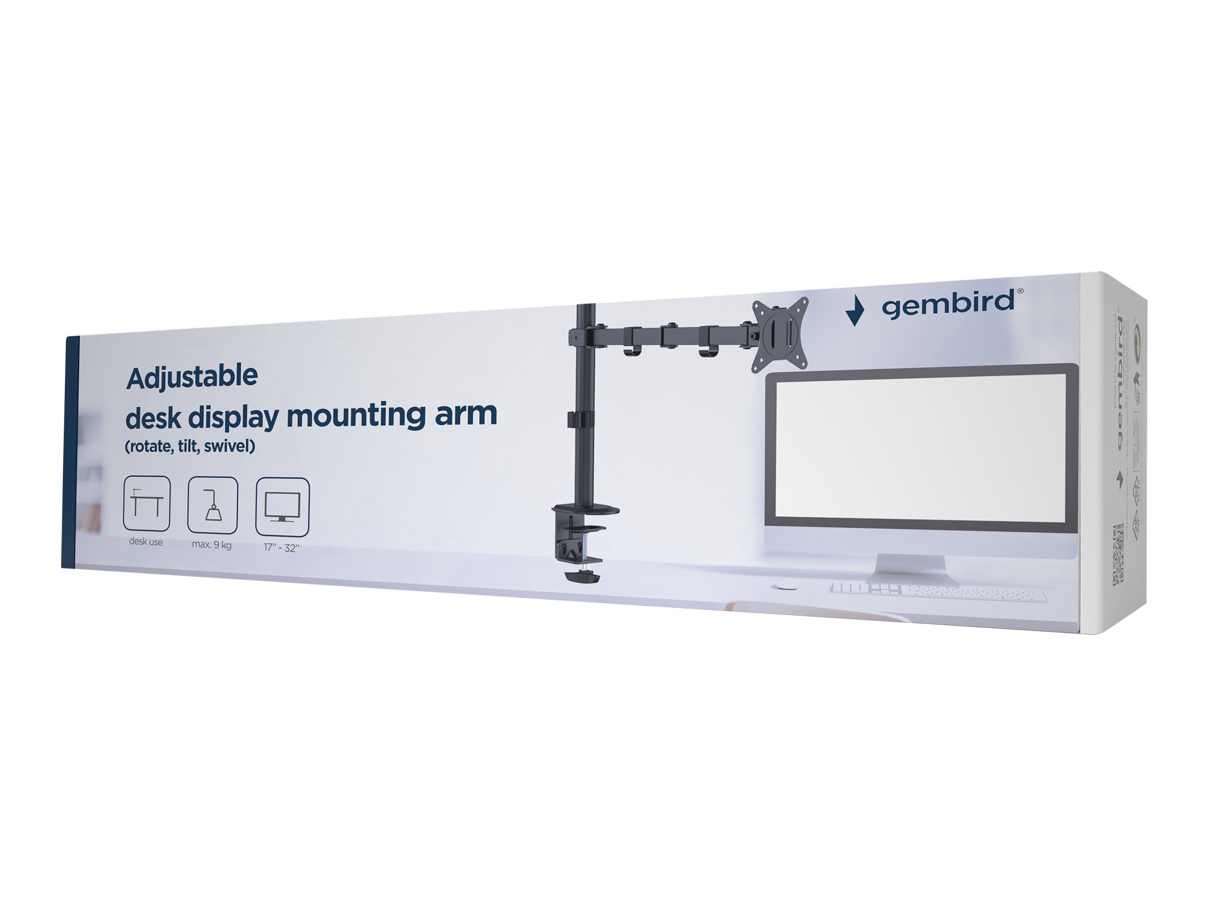 | Produktbeskrivelse | Gembird MA-D1-01 monteringssæt - justerbar arm - for fladt panel - roter, vip, drej, op til 9 kg - fin tekstursort |