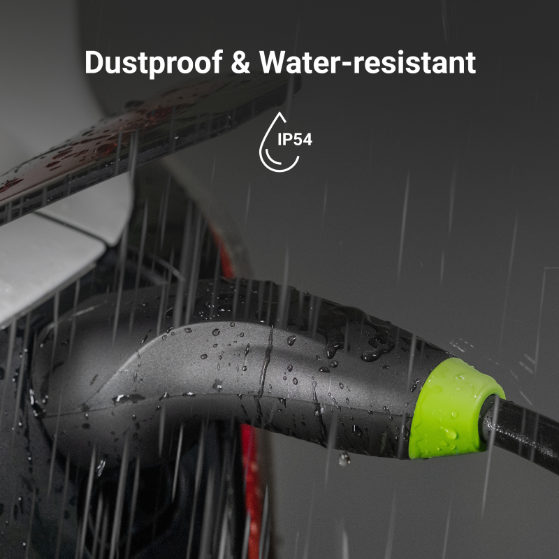 Overensstemmelsesstandarder IP54, TUV Rheinland, EN 62196-1:2014, EN 62196-2:2017, EN IEC 61851-1:2019