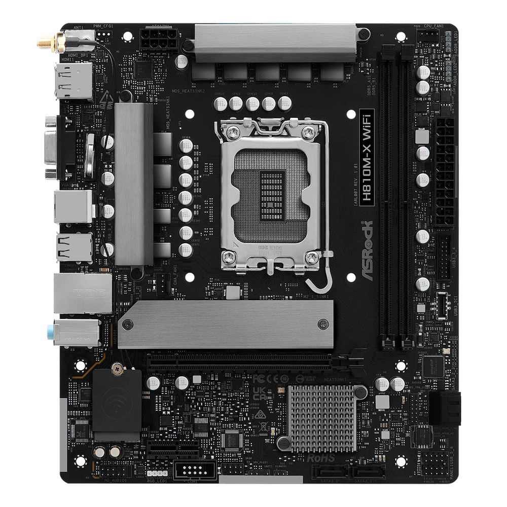 ASRock H810M-X WiFi - bundkort - micro ATX - LGA1851 sokkel - H810 Chipset - USB 3.2 Gen 1 - Gigabit LAN - Wi-Fi 6 - onboard grafik (CPU påkrævet) - HD Audio (8-kanaler)
