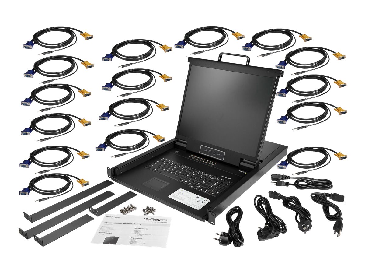 | Produktbeskrivelse | StarTech 16 Port Rackmount KVM Console with 6ft Cables, Integrated KVM Switch with 19" LCD Monitor, Fully Featured 1U LCD KVM Drawer- OSD KVM, Durable 50,000 MTBF, USB + VGA Support - 19in. LCD KVM Console (RKCONS1916K) - KVM-konsol - 19" |