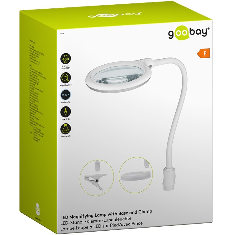 Goobay LED Luplampe - 1.75x - med fod/klemme - Hvid