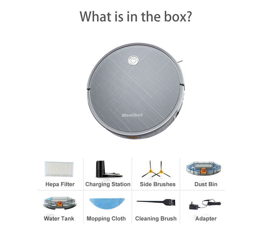 Mamibot EXVAC660 - Robotstøvsuger og Moppe - 600 ml støv tank - Styret fra et app - Grå