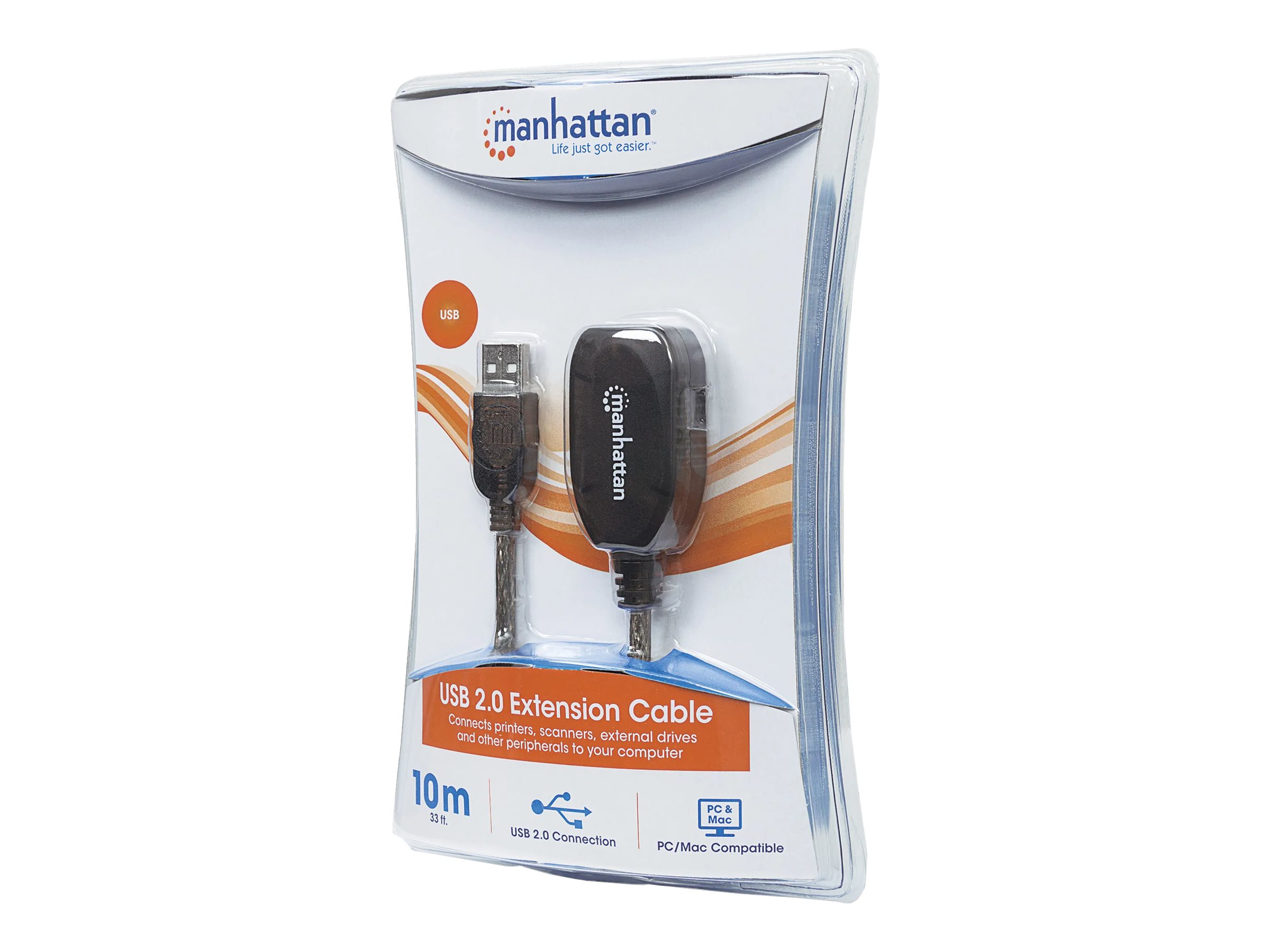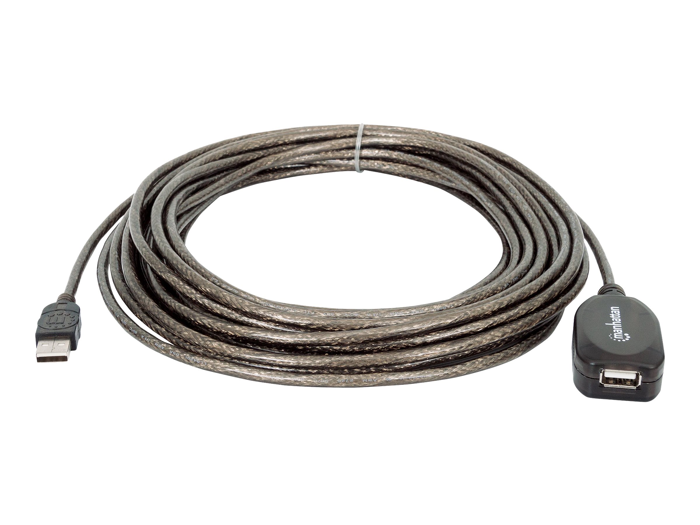 | Produktbeskrivelse | Manhattan USB-A to USB-A Extension Cable, 10m, Male to Female, Active, 480 Mbps (USB 2.0), Daisy-Chainable, Built In Repeater, Hi-Speed USB, Black, Three Year Warranty, Blister - USB forlængerkabel - 10 m |