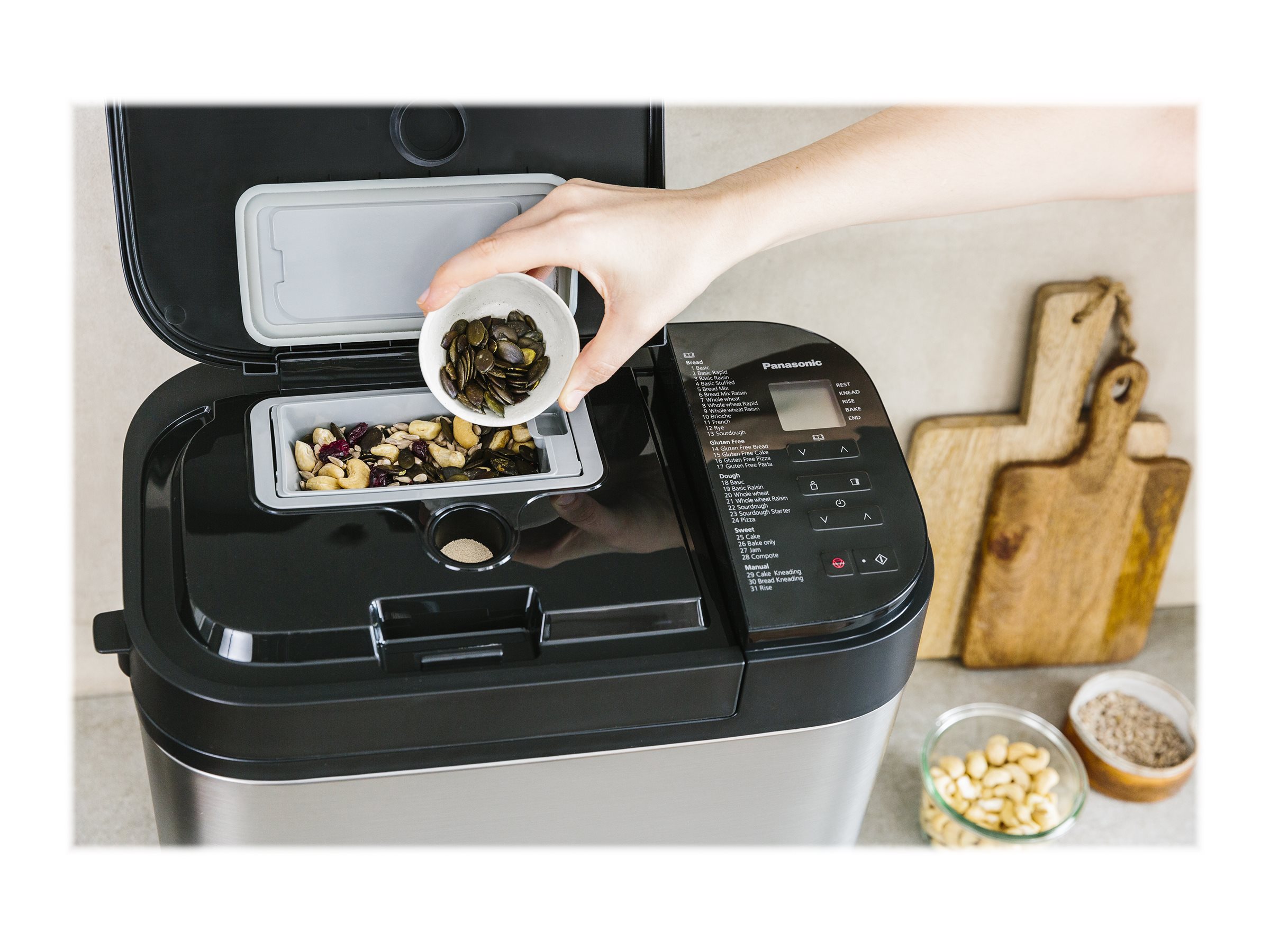 | Funktion og indstillinger | Marmeladefunktion, kagebagningsfunktion, bagefunktion, surdejsstarterfunktion, æltefunktion, kompotfunktion, brødfunktion, franskbrødfunktion, dejfunktion, basal franksbrødsfunktion, pizzadejsfunktion, brødhævningsfunktion, hurtig brød-funktion, rugb |