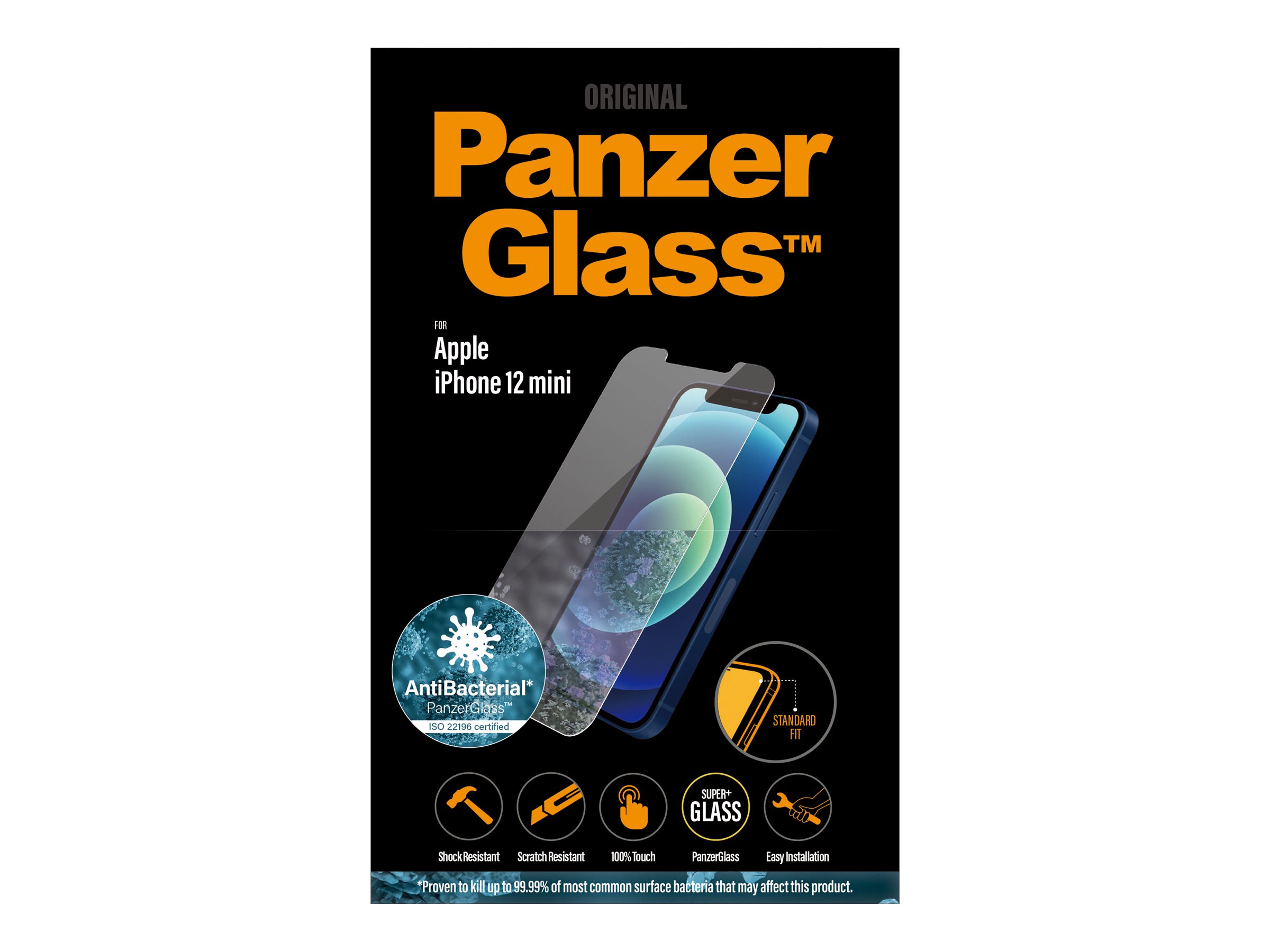 Beskyt din telefon mod hverdagens udfordringer med PanzerGlass . Utilsigtede bump mod skarpe genstande i lommen eller drop på stenhårdt underlag er ikke noget problem for denne skærmbeskyttelse, der er modstandsdygtig over for ridser og stød. Den har endda en fingeraftryksafvisende overfladebehandling med antibakteriel effekt, der reducerer spor af fedtfingre og dræber op til 99,99 % af alle almindelige overfladebakterier. Skærmbeskyttelsen er nem at sætte på, og når den er sat på, vil du aldrig mere frygte at se din telefon falde. Det kan være, det aldrig sker – men hvis det gør, vil du fortryde, at du ikke trykkede på "Tilføj til kurv".Skærmbeskyttelsen Standard Fit dækker den aktive del af din skærm.