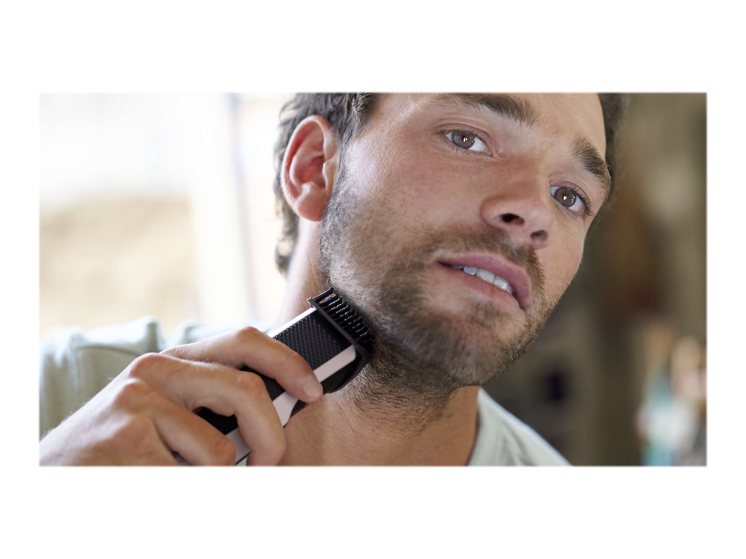 Denne trimmer med det innovative Lift & Trim-system løfter og opfanger mere lavtliggende hår, så du får en effektiv og ensartet trimning. På denne måde får du nemt det udseende med tredagesskægstubbe, kort eller langt skæg, du ønsker.