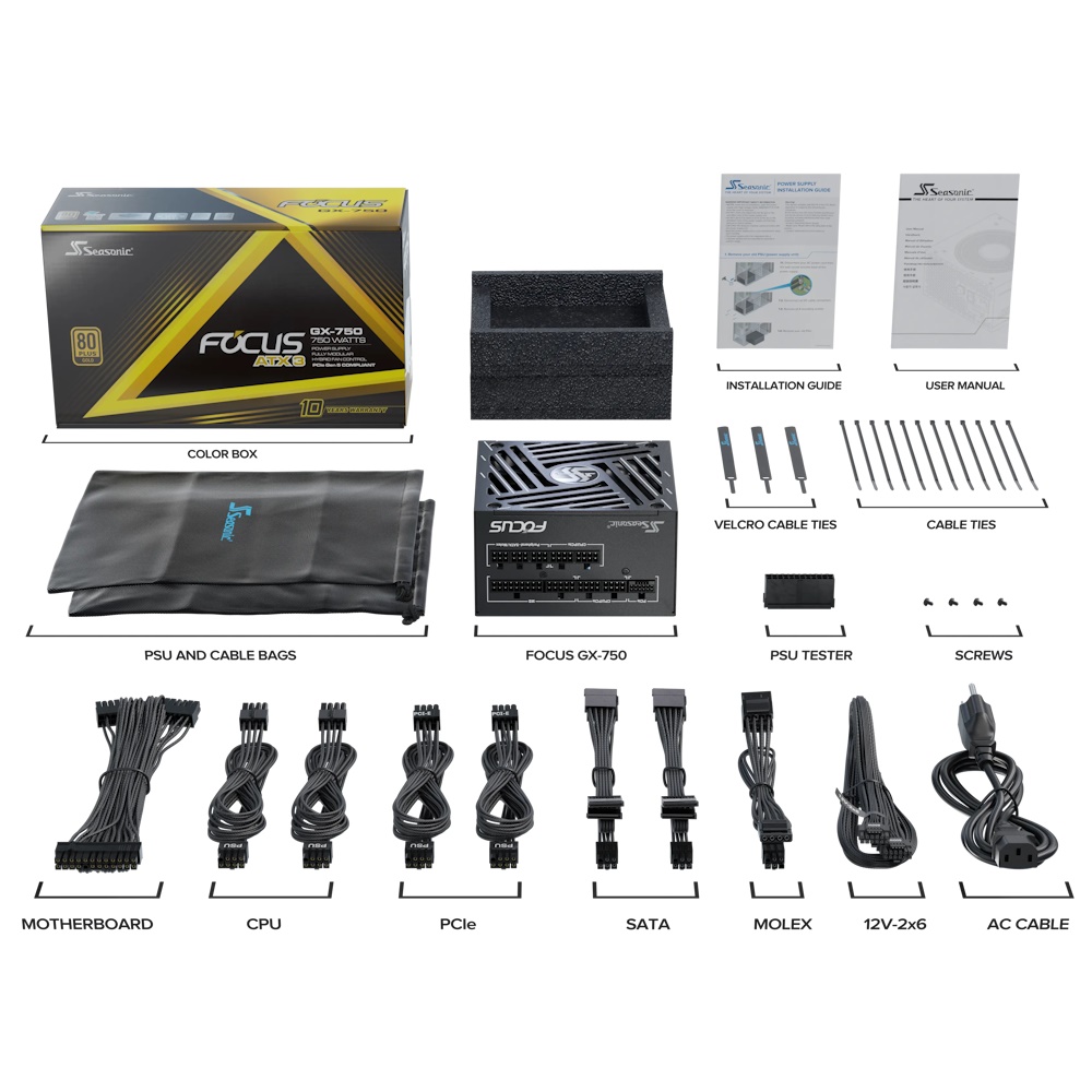 Seasonic Focus GX-750 V4 - Strømforsyning (intern) - ATX12V 3.1/ EPS12V - 80 PLUS Gold - AC 100-240 V - 750 Watt