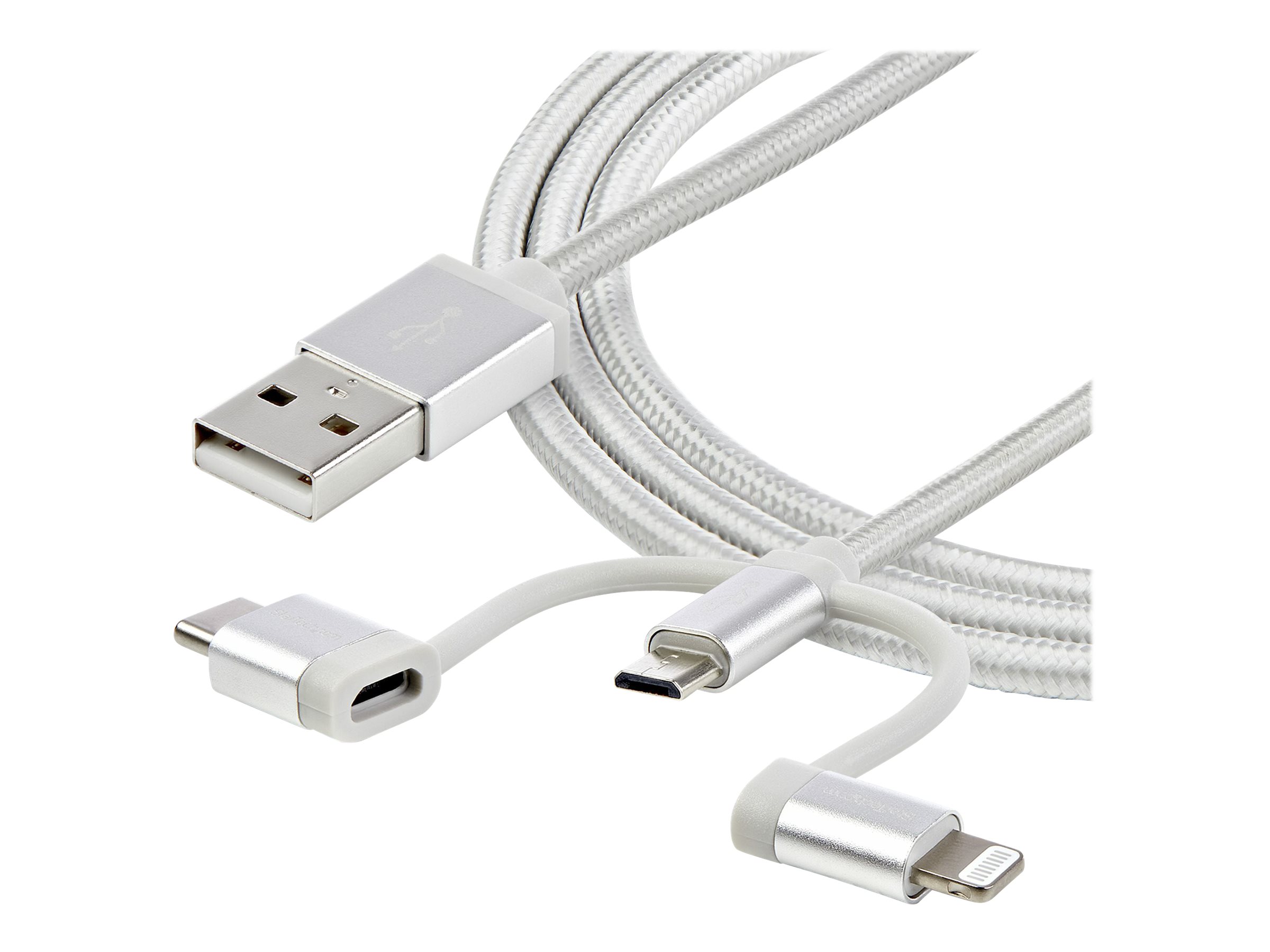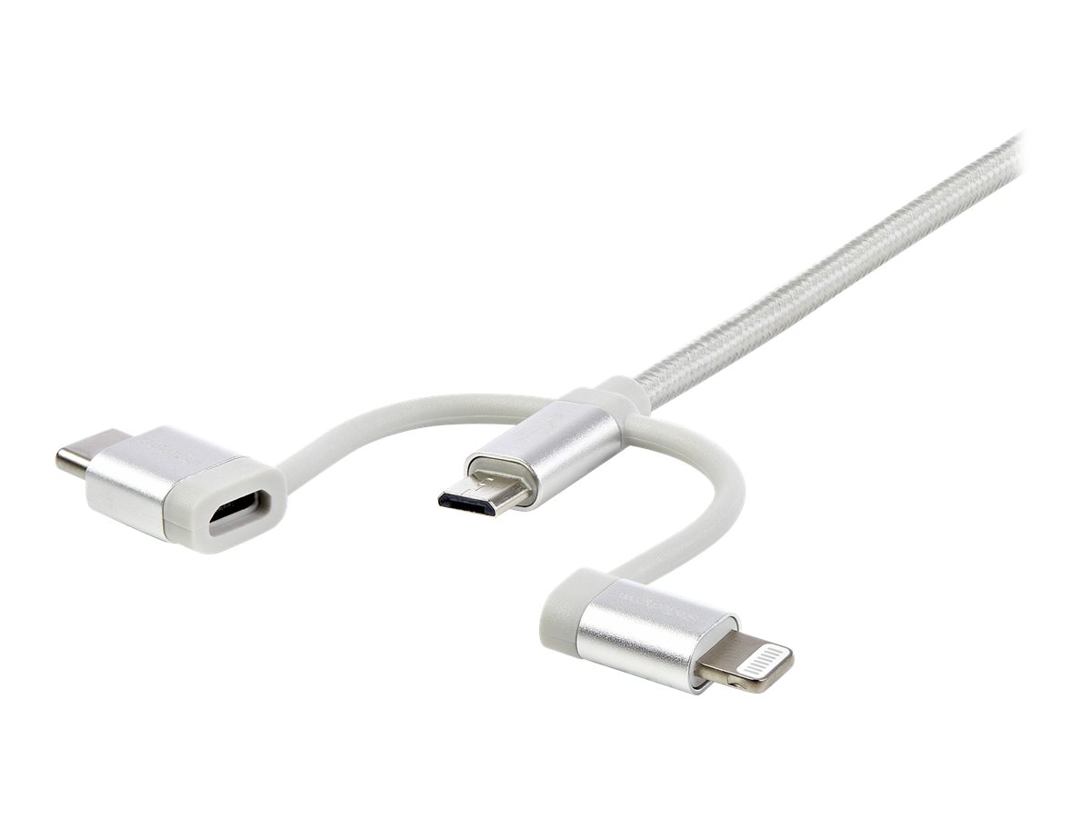 | Produktbeskrivelse | StarTech USB Multi Charging Cable - 3.3 ft / 1m - Lightning / USB-C / Micro-USB - Braided - MFi Certified - USB 2.0 - 3 in 1 Charging (LTCUB1MGR) - USB-kabel - 1 m |