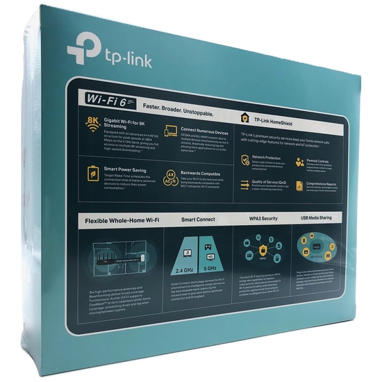 | Egenskaber | IGMP snooping, SPI, DFS-understøttet, forældrekontrol, Tilgangspunkt, drift, ACL support, QoS, virtuel server support, WPS, DHCP server, Samba support, FTP server, port fremsendelse, UPnP Media Server, nulstillingsknap, Apple Time Machine kompatibel, port triggering, dynamisk IP modus, IP-MAC binding, DHCP klient, 4T4R MIMO-teknologi, mærket VLAN, IGMP proxy, stråleformeteknologi, Static Link Aggregation, LED til/fra-knap, Airtime Fairness, 4x4 MU-MIMO-teknologi, Smart Roaming, DMZ-support, brotilstand, OpenVPN-klient, IPTV support, 8K HD video streaming, WPS-knap, OneMesh support, 160 MHz båndbreddesupport, auto-firmware-opdatering, TP-Link HomeShield, Wi-Fi til/fra-knap |