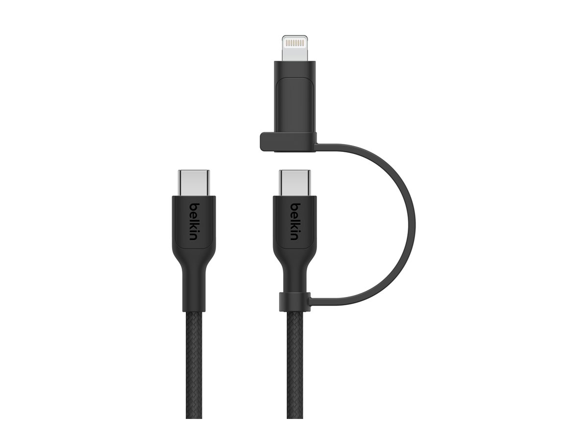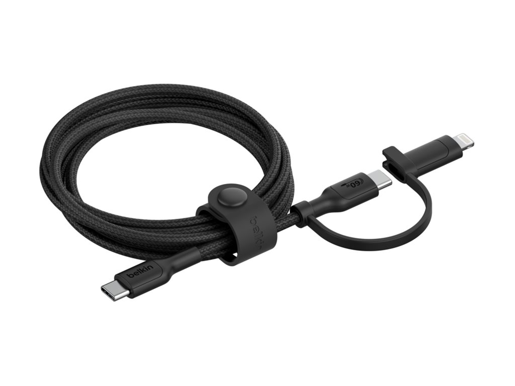 Belkin BoostCharge Pro 2-in-1 - USB-kabel - USB-C (han) til Lightning, USB-C (han) - USB 2.0 - 1.5 m - op til 480 Mbps, Fast Charging op til 60 W - sort