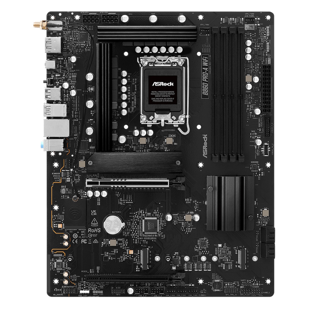 ASRock B860 Pro-A WiFi - ATX - Socket LGA1851 - WiFi 6E - 4x DDR5 slots - HDMI 2.1 - DisplayPort 1.4 - Dragon RTL8125BG