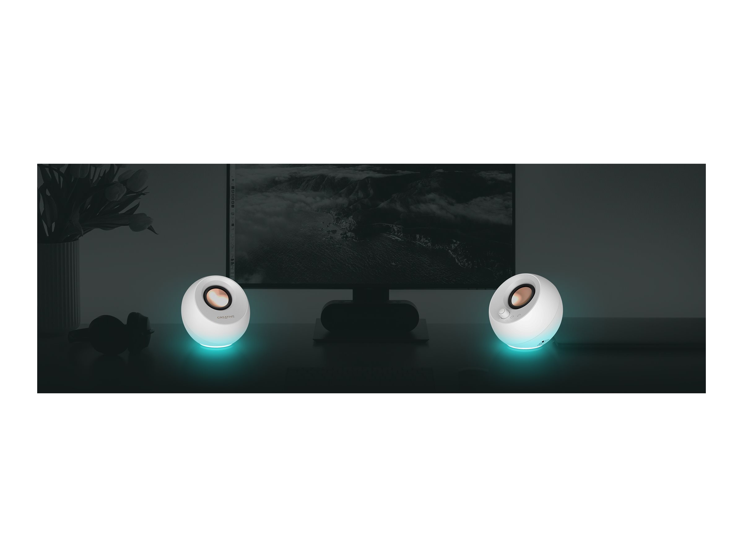 Det vinklede design af Creative Pebble Pro-højttalerne giver et elegant udseende og optimerer lydprojektionen, hvilket gør dem ideelle til enhver skrivebordsopsætning.