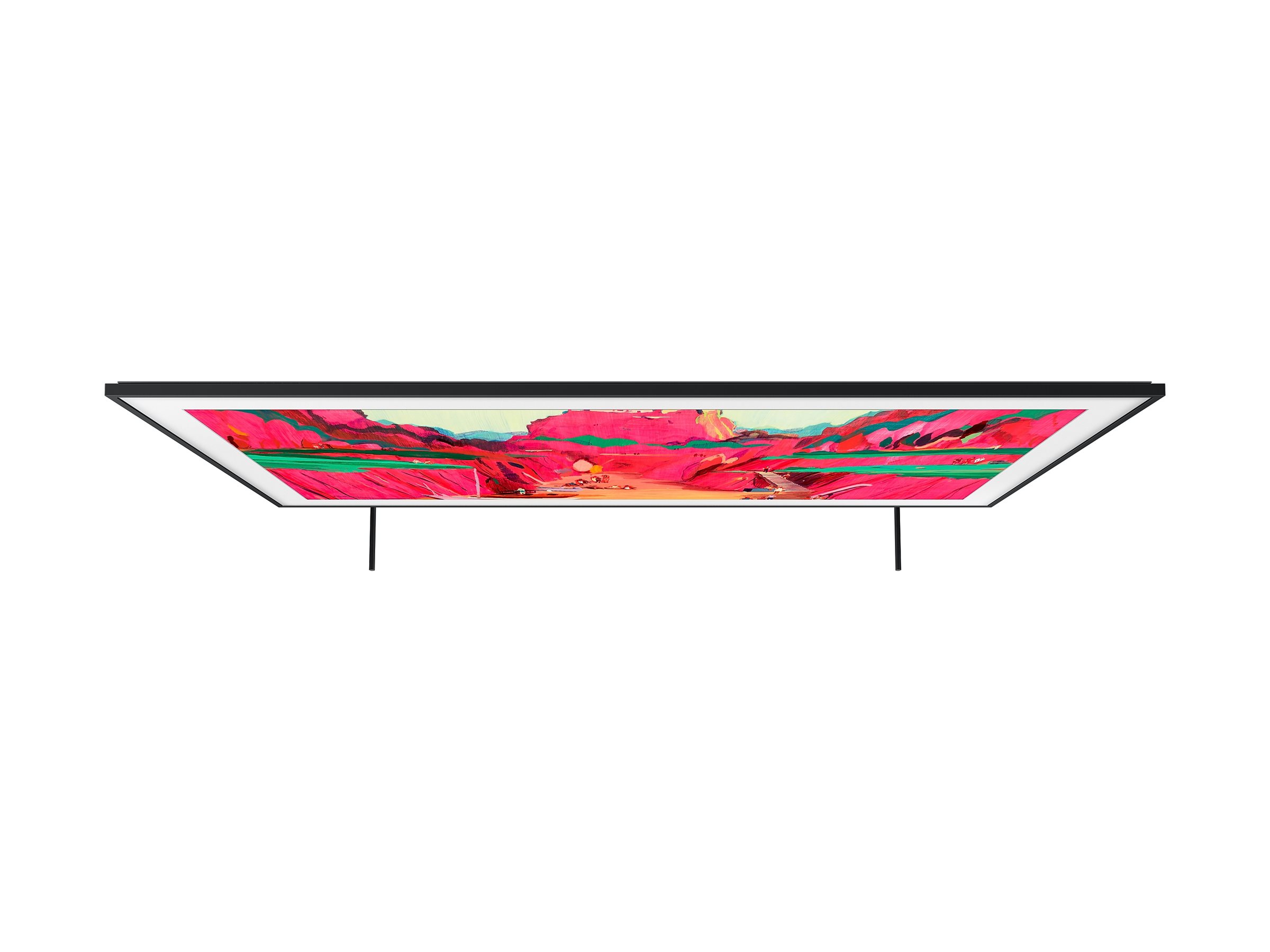 Det elegante design med meget smal ramme passer til enhver indretning, mens den tilpasselige ramme og den højdejusterbare fod giver mulighed for alsidig placering i dit rum.