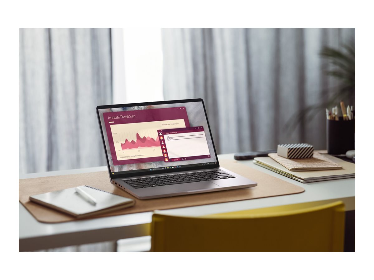 Den 14-tommer Full HD Plus-skærm har en opløsning på 1920 x 1200, hvilket sikrer skarpe og klare billeder, der øger produktiviteten. Dens antirefleksegenskaber minimerer refleksioner, hvilket gør den velegnet til forskellige lysforhold.