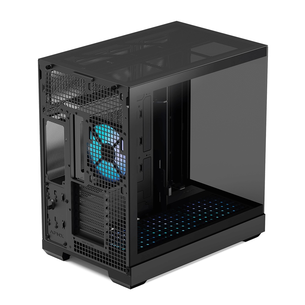 APNX V2-F - Mid tower - ATX - sidepanel med vindue - ingen strømforsyning (ATX) - sort - USB/Lyd