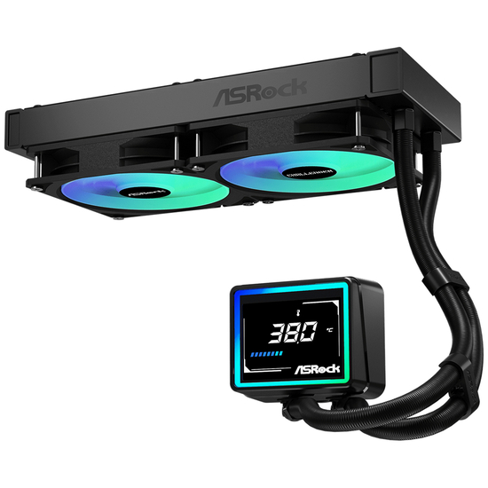 Asrock Challenger 240 Digital ARGB - Processors flydende kølesystem - med LED-display - Radiatorstørrelse: 240 mm - (for: AM4, LGA1700, AM5, Socket, LGA1851) - kobber - 120 mm - sort
