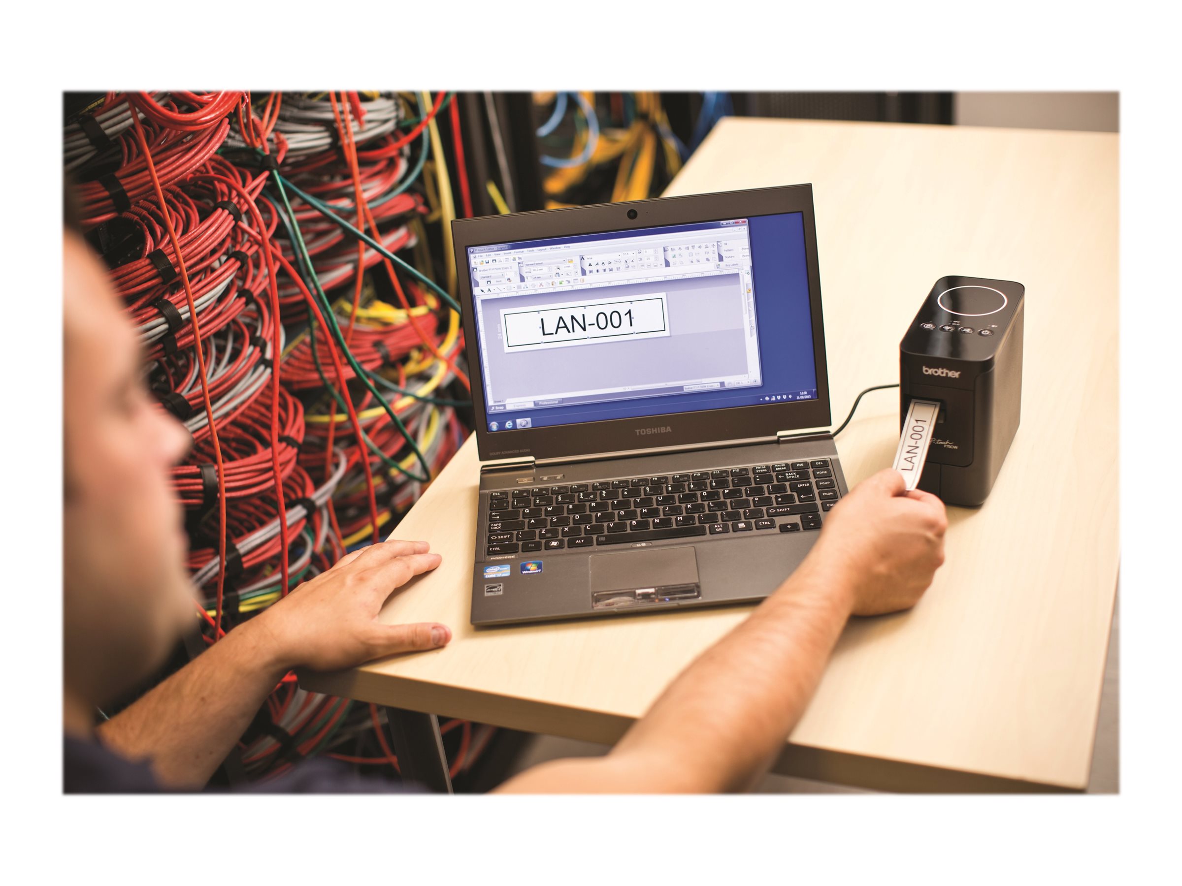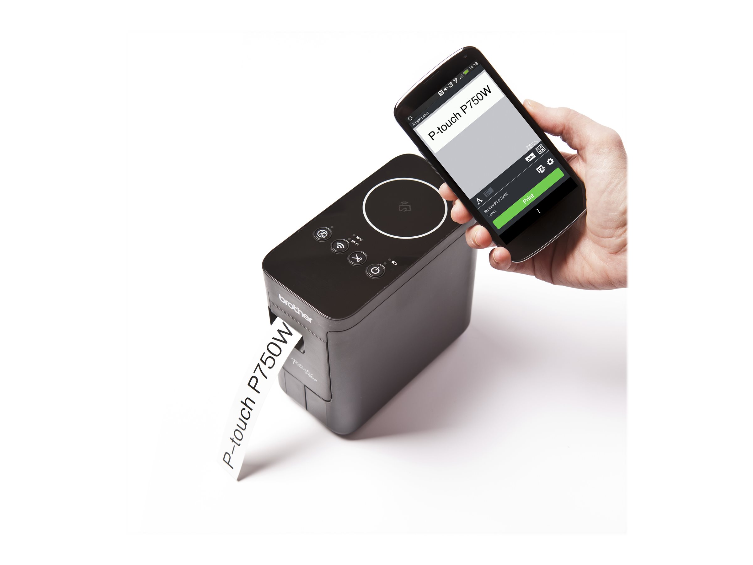 Nu kan alle medarbejdere deles om kontorets praktiske labelprinter. Den hedder Brother PT-P750W og kan arbejde med både pc, Mac, tablets og smartphones via et trådløst Wi-Fi-netværk eller NFC. Brothers PT-P750W gør det således muligt, at alle virksomhedens medarbejdere kan være fælles om den hurtige og praktiske labelprinter via et trådløst Wi-Fi-netværk. Brother labelprinter kommer med software indbygget, så man ikke skal vente på, at programmerne skal hentes på f.eks. en pc. I stedet kan man gå i gang med at designe og udskrive labels med det samme. Meget praktisk er PT-P750W udstyret med en automatisk kniv med en særlig halvklipfunktion. Den skærer kun labelen halvt igennem, så det er nemt at skille bagsidepapiret fra den selvklæbende label.