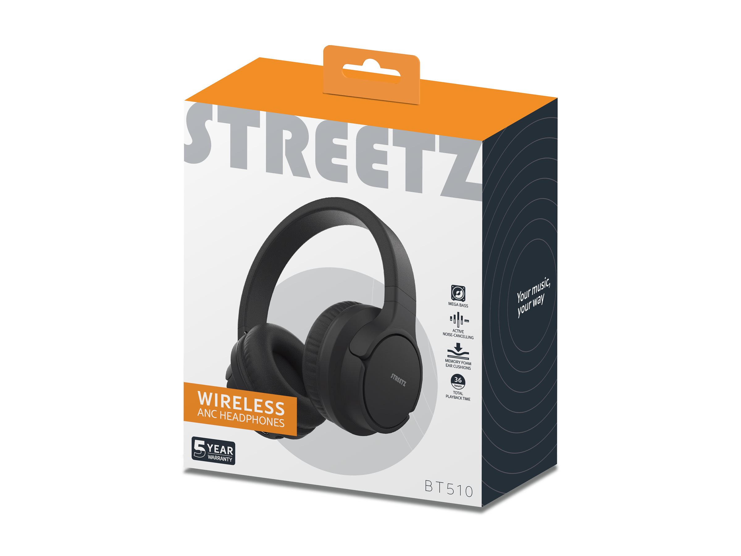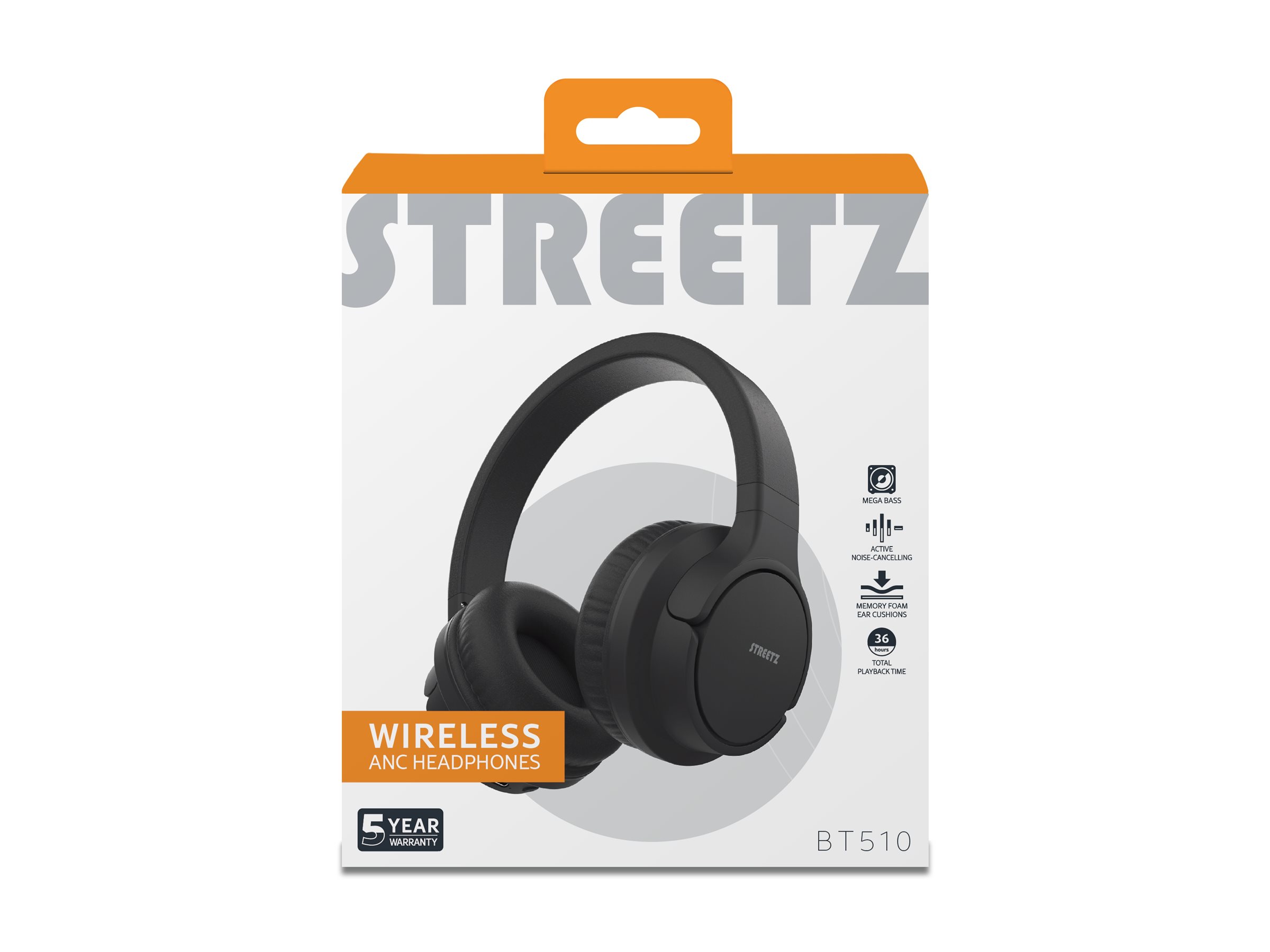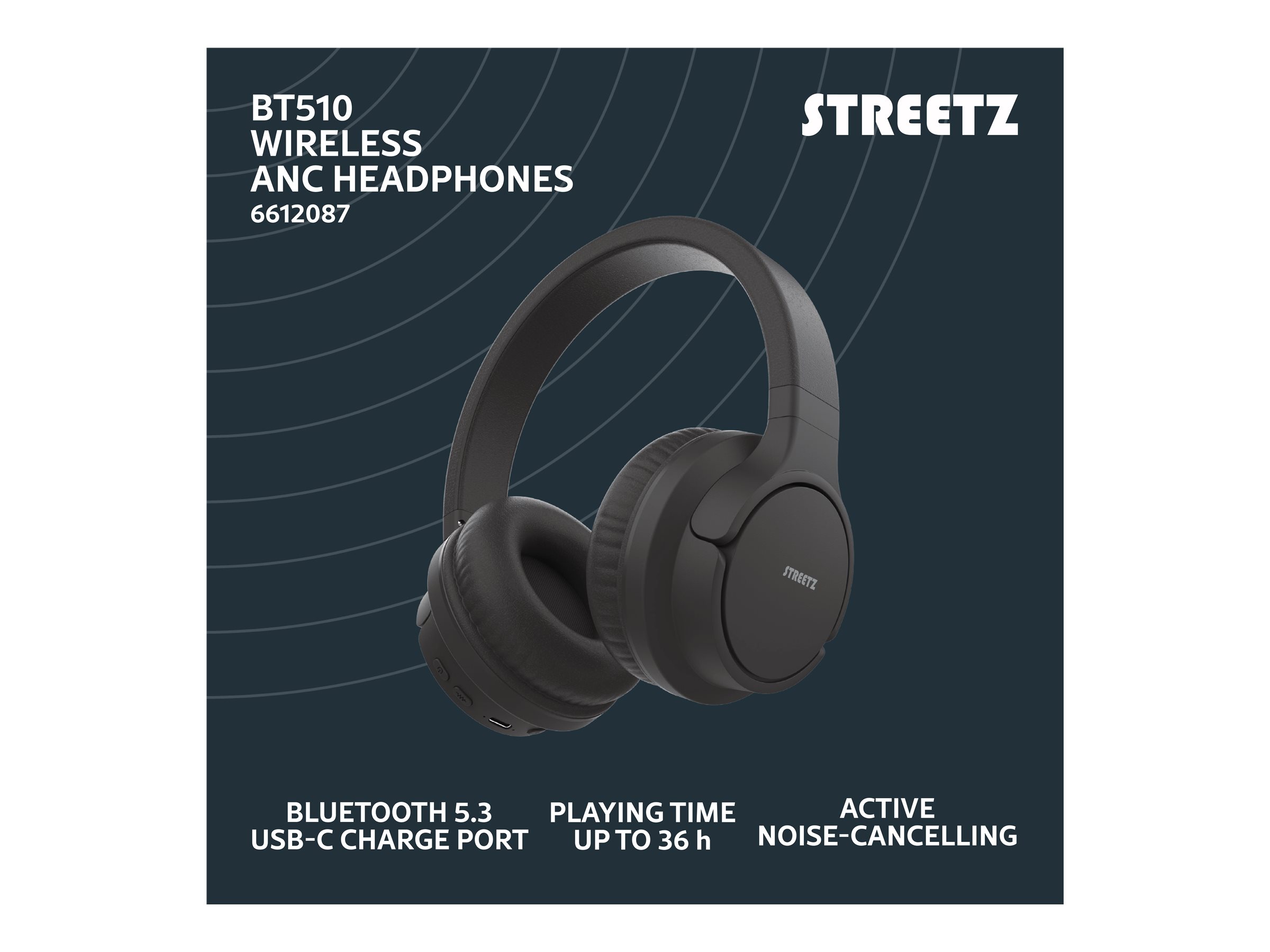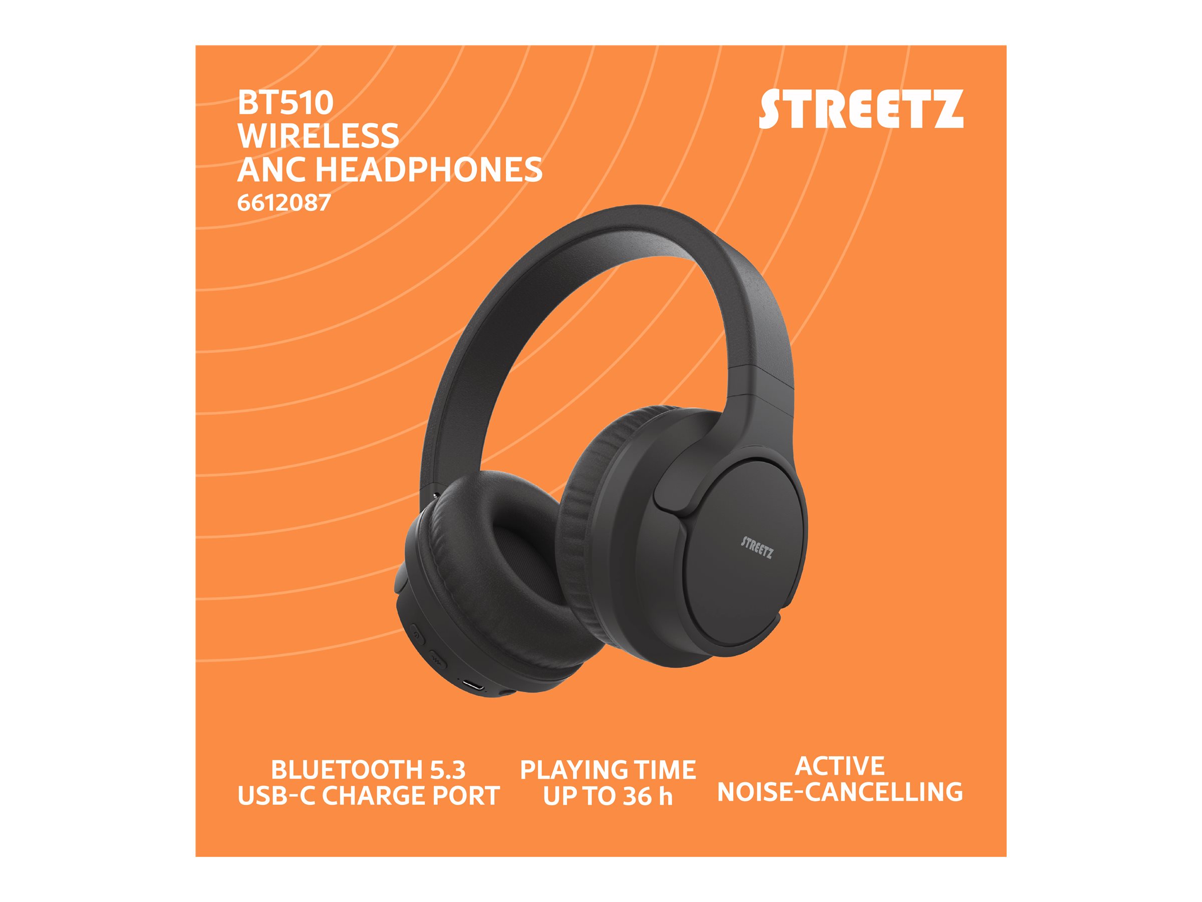 STREETZ BT510 - Hovedtelefoner med mik. - på øret - Bluetooth - trådløs - aktiv støjfjerning - sort