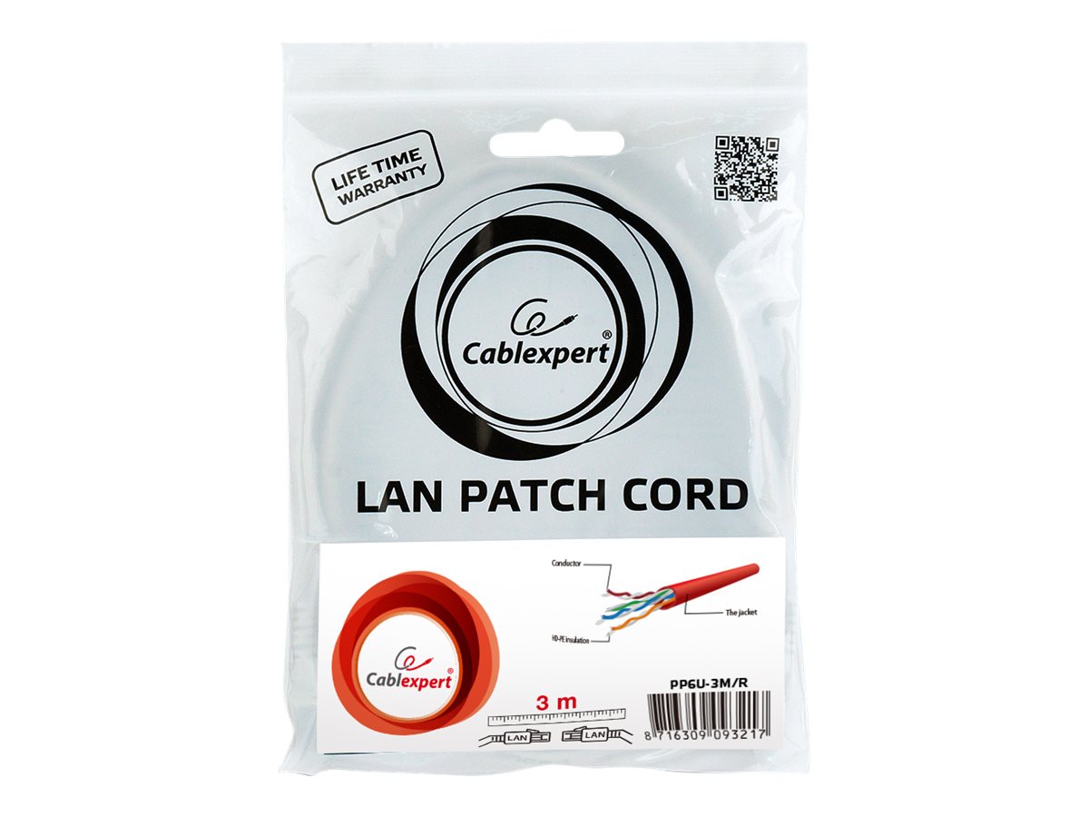 | Produktbeskrivelse | Cablexpert patchkabel - 3 m - rød |