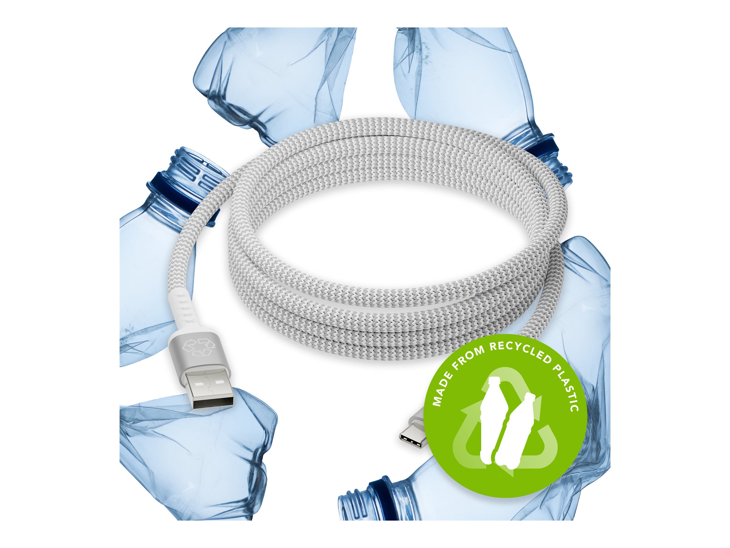 Dette kabel er fremstillet af 100 % genanvendt plast og er et bæredygtigt valg, der lever op til miljøvenlige værdier og samtidig bevarer funktionaliteten.