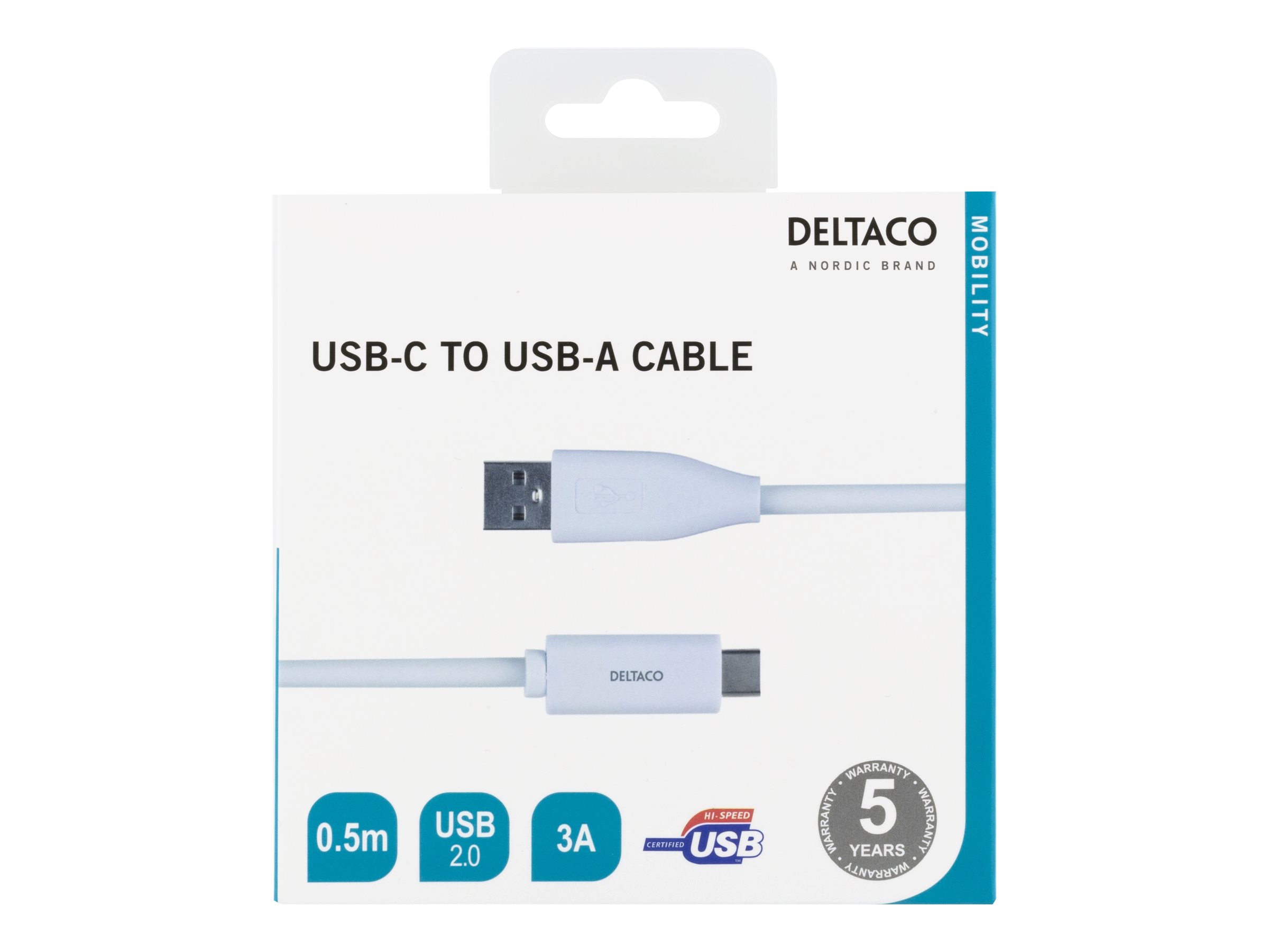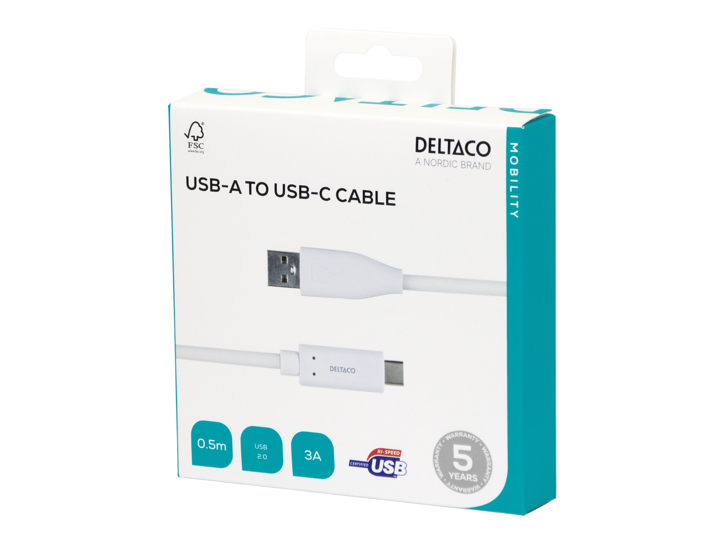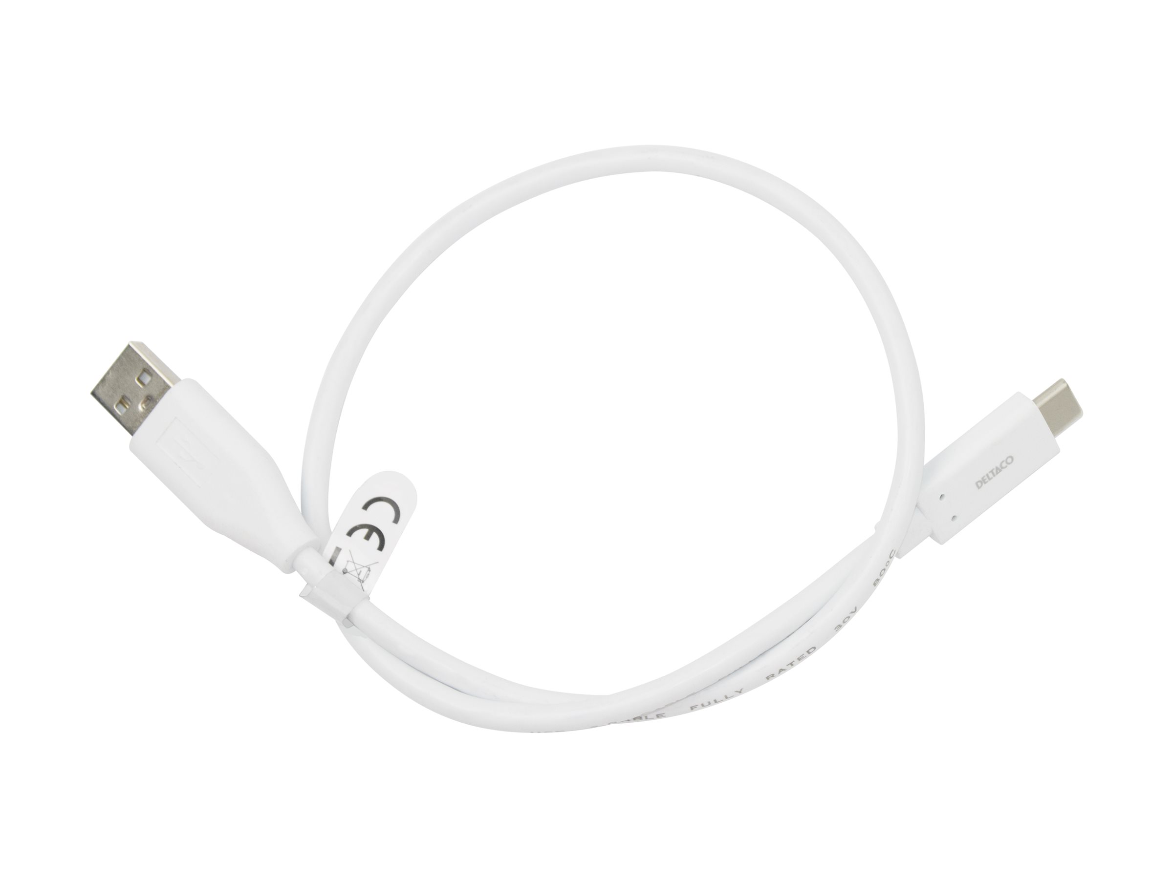 DELTACO USBC-1008M - USB-kabel - USB-C (han) til USB (han) - USB 2.0 - 3 A - 50 cm - hvid