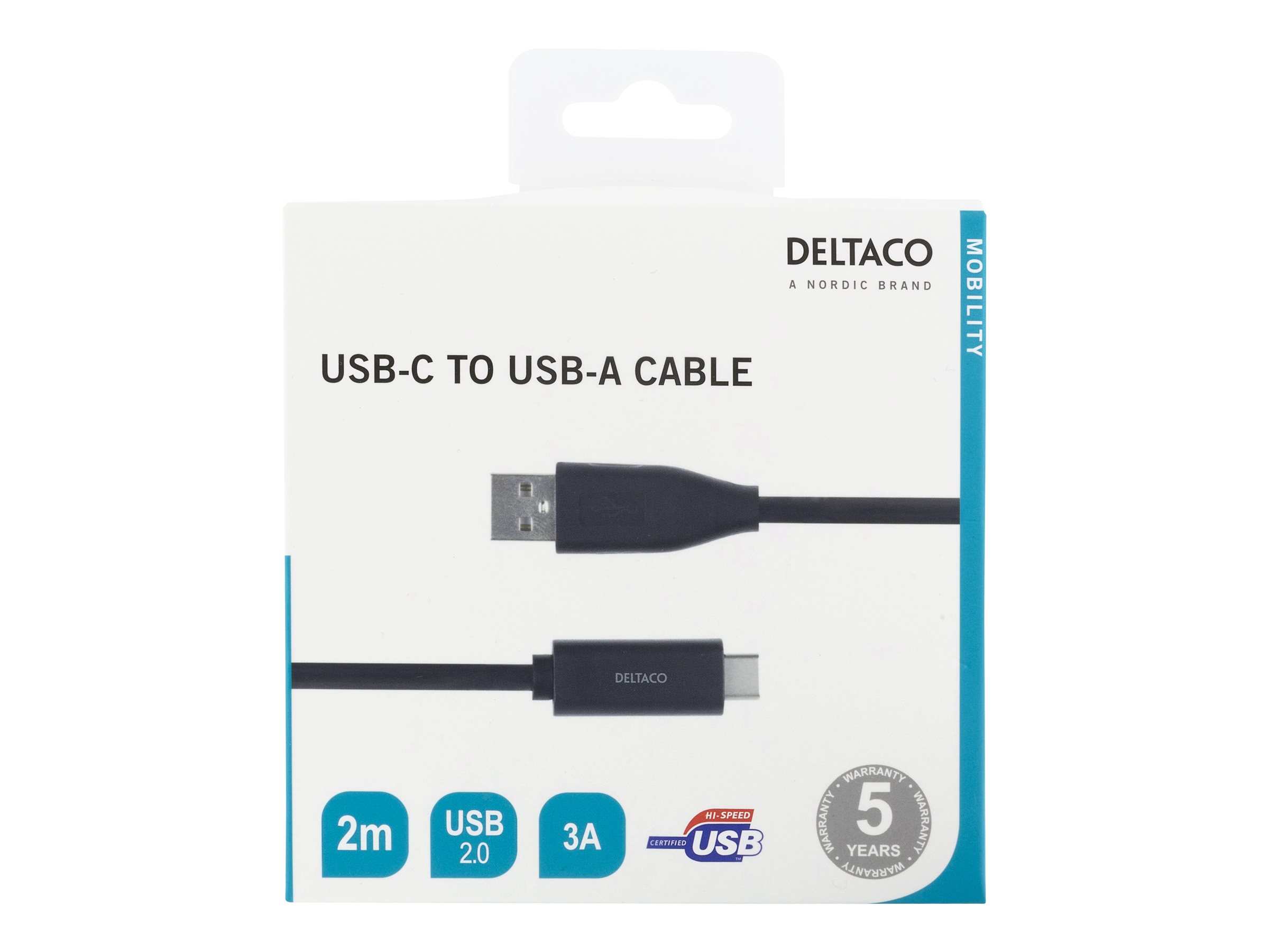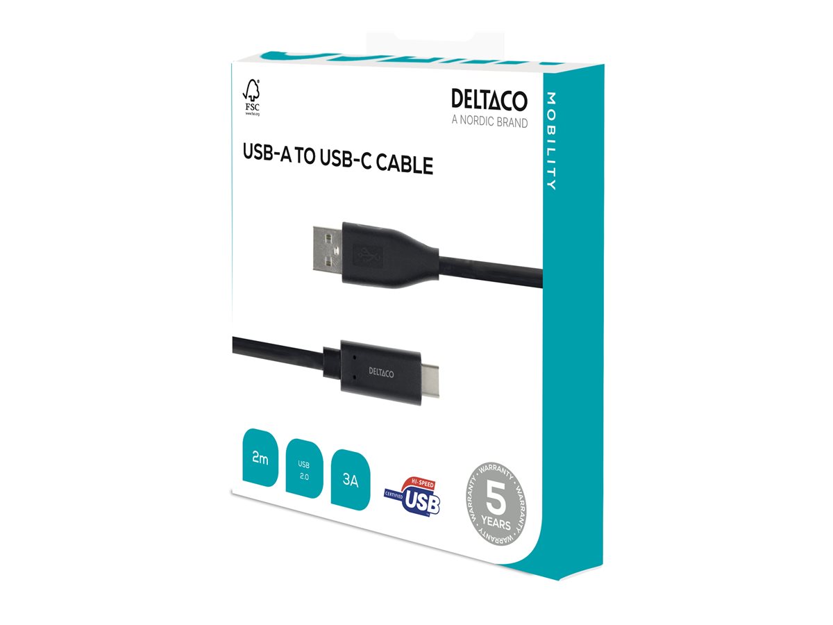 | Produktbeskrivelse | DELTACO USBC-1006M - USB Type-C kabel - USB-C til USB - 2 m |