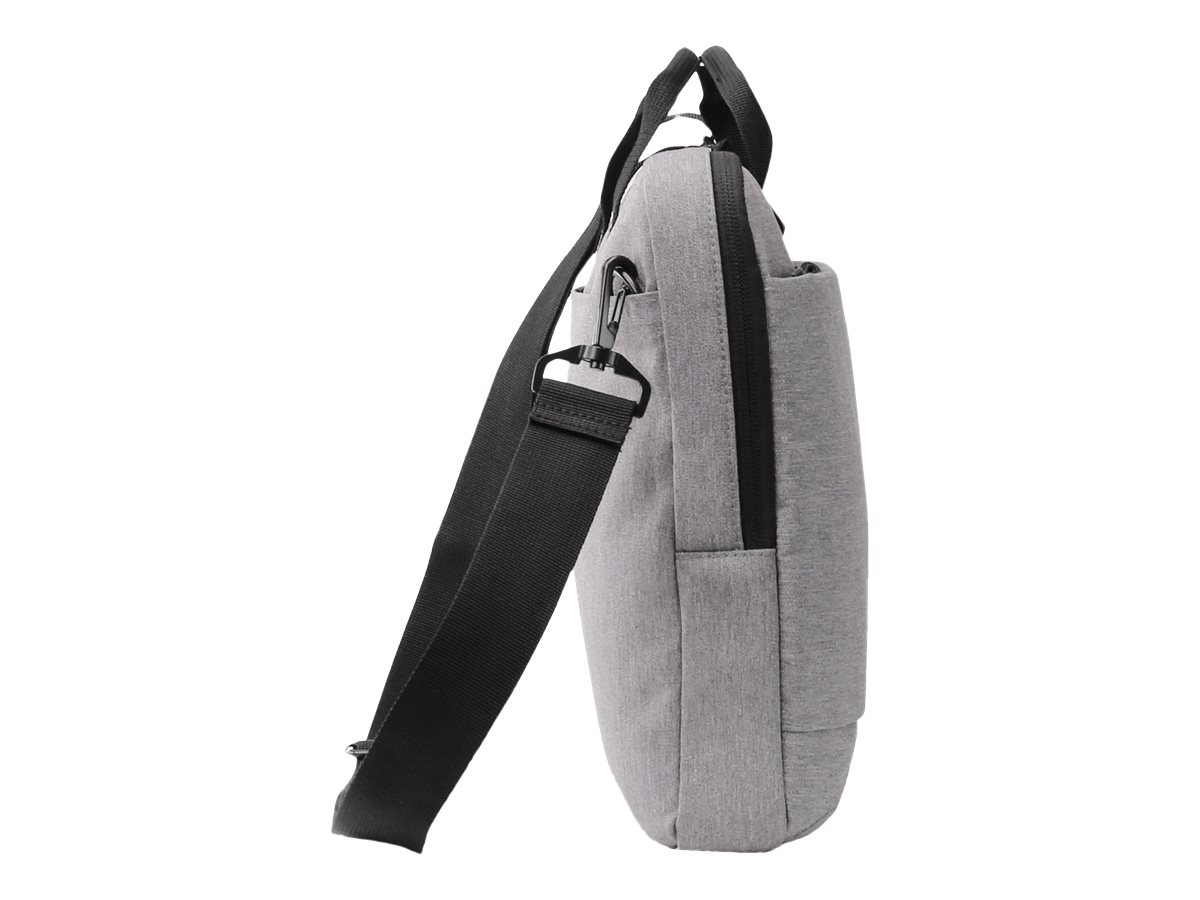 Eco slim case Motion er en let og slank taske til bærbare computere. Enheder mellem 10" og 11,6" er godt beskyttet i det polstrede notebook-rum. Stiklommen giver pålidelig beskyttelse til tablets op til 10,9". Tasken er behagelig at bære takket være det polstrede bærehåndtag og den justerbare skulderrem. Det ekstra rum på bagsiden er især praktisk til nem opbevaring af dokumenter. Din smartphone eller andre mindre ting som kabler, kuglepenne eller opladere kan opbevares i den praktiske forlomme, så de altid er lige ved hånden. Tasken er lavet af vandafvisende materiale for at beskytte indholdet selv på regnfulde dage. Eco slim case Motion er derfor perfekt til dig, der altid er på farten og gerne vil støtte genanvendelsen af PET-flasker med en miljøvenlig taske.