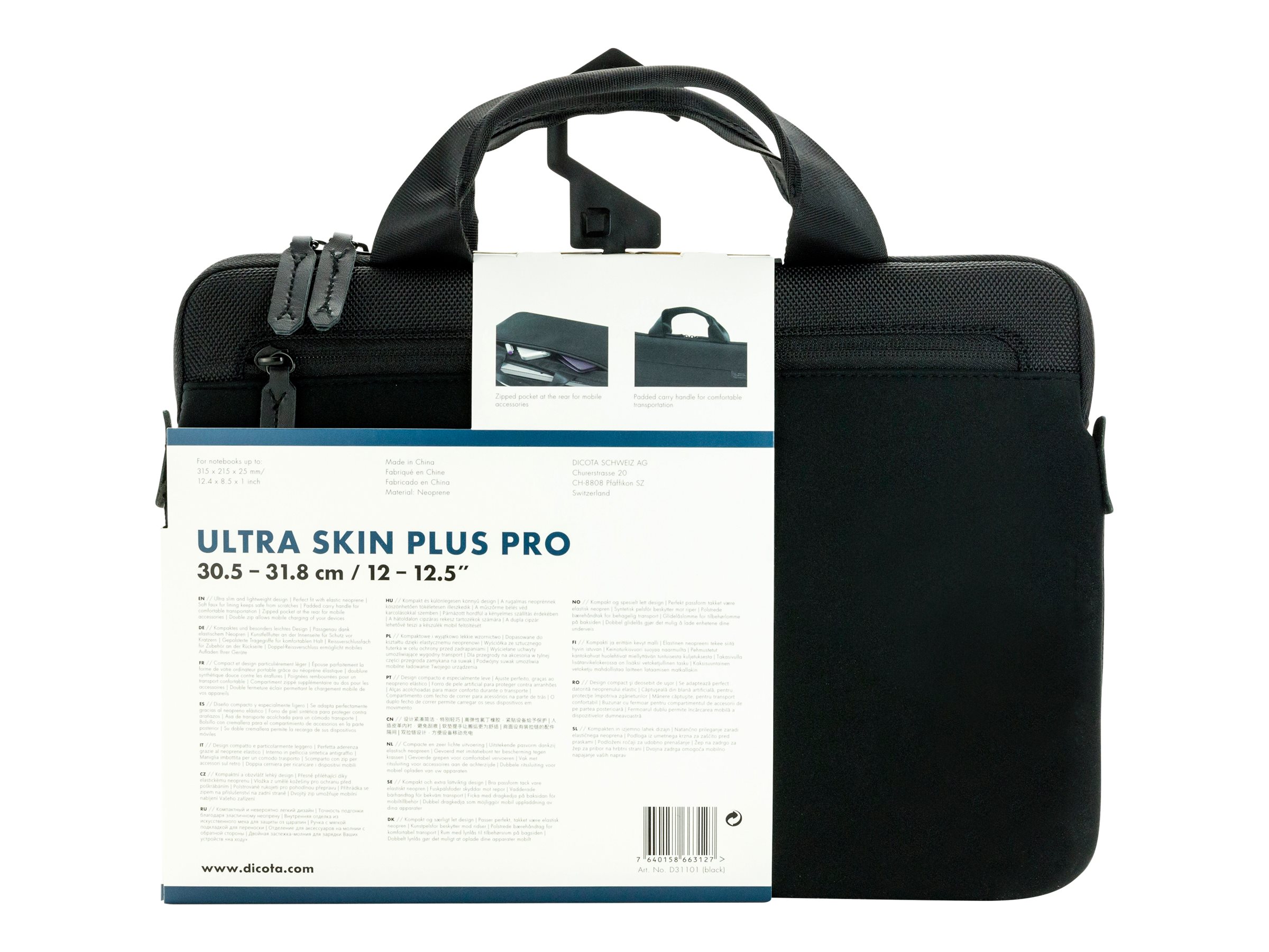 | Produktbeskrivelse | DICOTA Ultra Skin Plus PRO Laptop Sleeve 12.5" - bæretaske til notebook |
