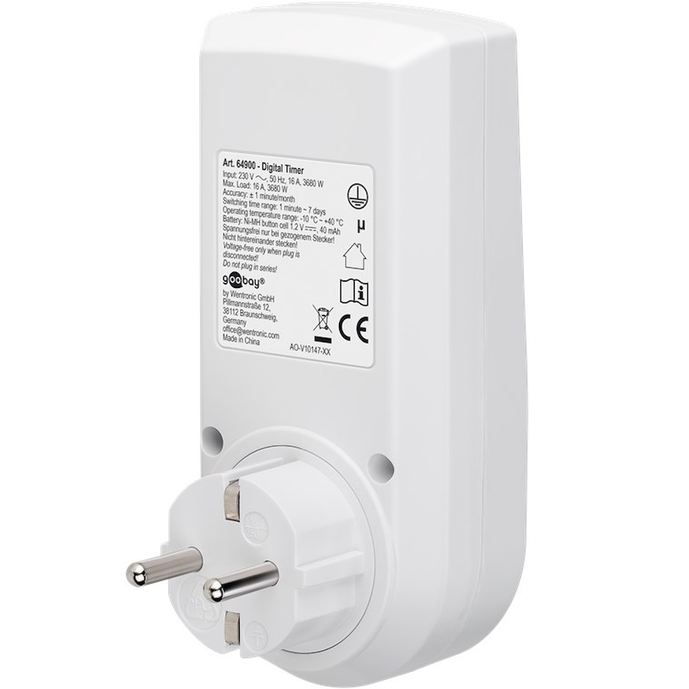 Emergency battery NiMH - saves programmes for more than 100 days when the plug timer is disconnected