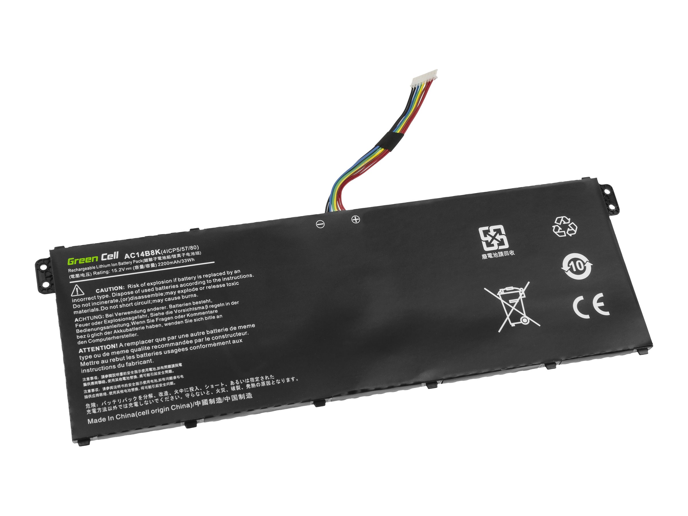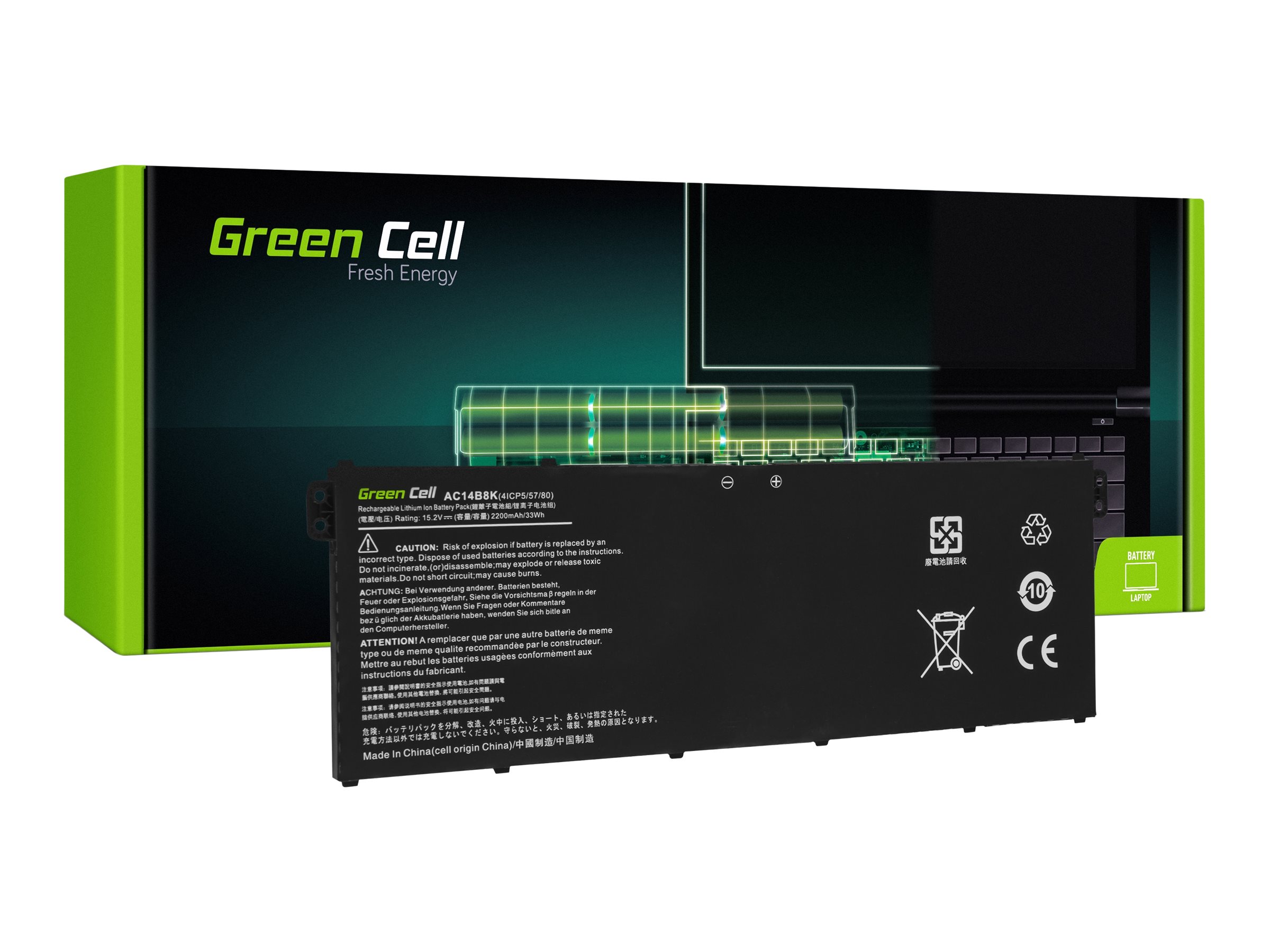Oplev den pålidelige strømløsning til din notebook med Green Cell notebook-batteriet. Dette 4-cellede litiumpolymerbatteri er designet til holdbarhed og sikkerhed og har en kapacitet på 2200 mAh og 15,2 V strøm, hvilket sikrer, at din enhed forbliver opladet gennem dine mest krævende opgaver. De indbyggede beskyttelsesfunktioner mod overopladning og overafladning forlænger ikke kun batteriets levetid, men beskytter også din notebook mod potentielle strømrelaterede skader. Det er kompatibelt med Acer AC14B3K- og Acer AC14B8K-modellerne og giver en problemfri udskiftning eller opgradering, så din notebook fungerer bedst muligt. Uanset om du arbejder hjemmefra, på kontoret eller er på farten, er dette notebook-batteri den perfekte ledsager til dine computerbehov.