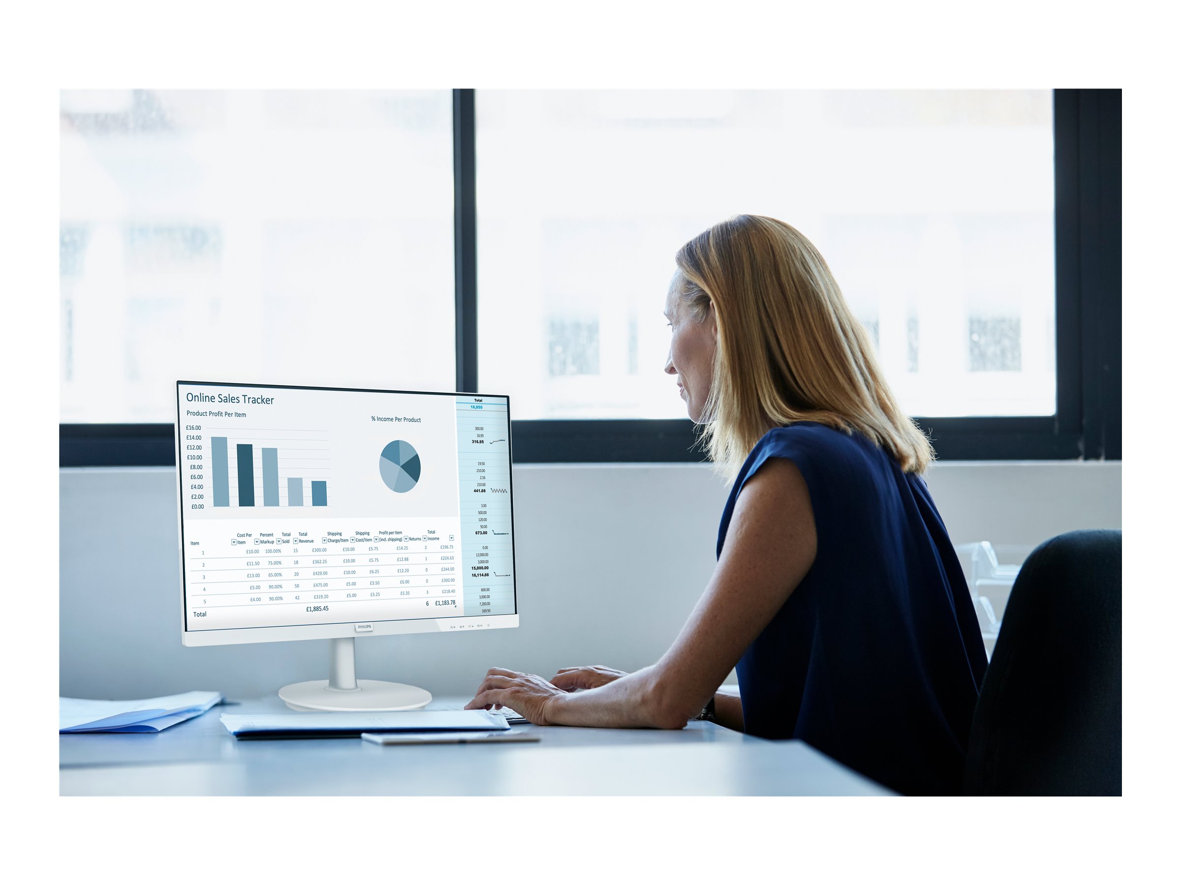 Philips V line-skærm med bred synsvinkel giver visning ud over grænserne, høj værdi med vigtige funktioner. Adaptive-Sync giver jævn videovisning. Funktioner som blændfri, LowBlue-tilstand og flimmerfri for at skåne øjnene.