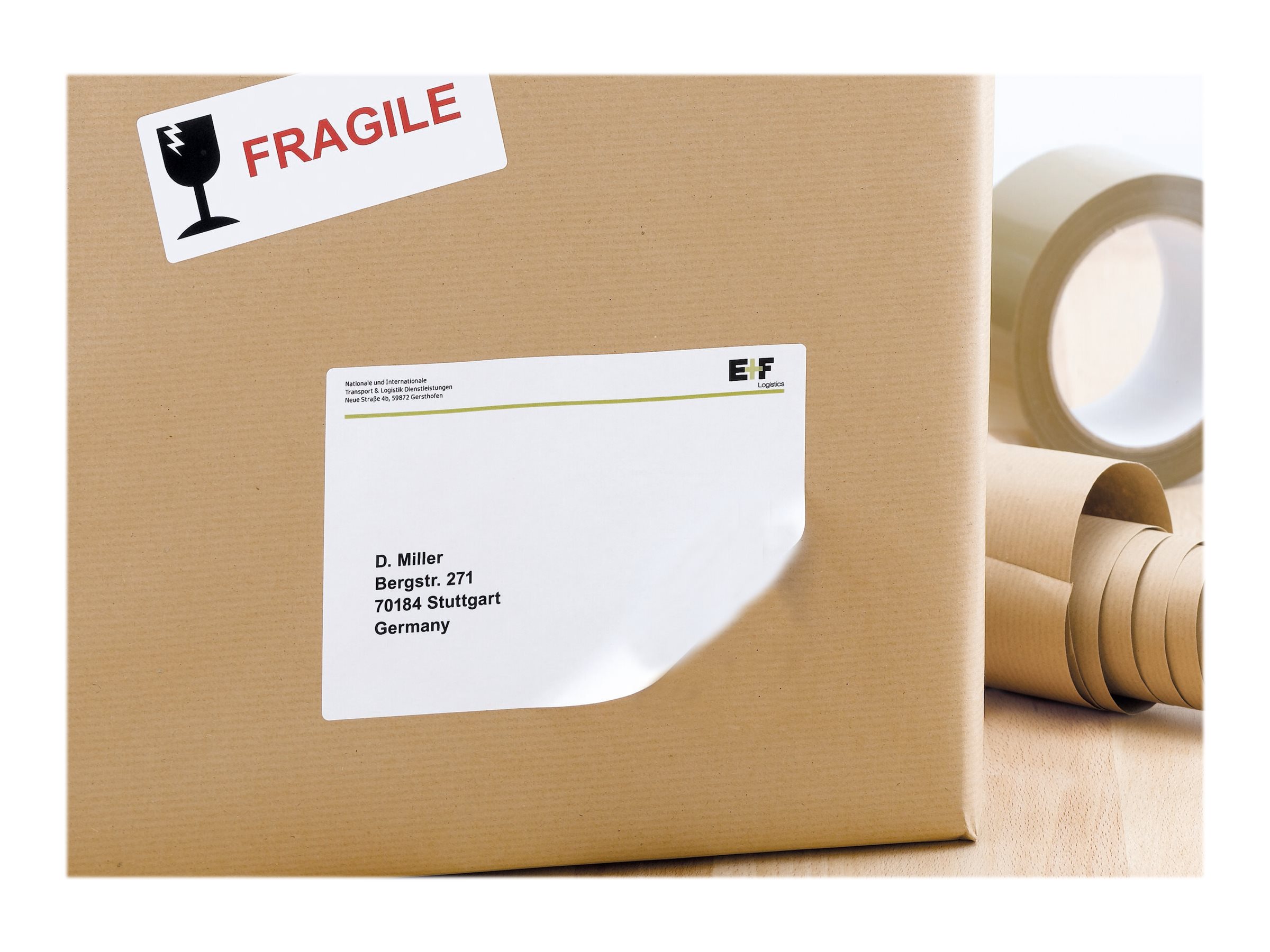 Adresseetiketter på A4-ark - kan sættes på igen. Med Movables-Technology: kan trækkes af og klæbes på igen