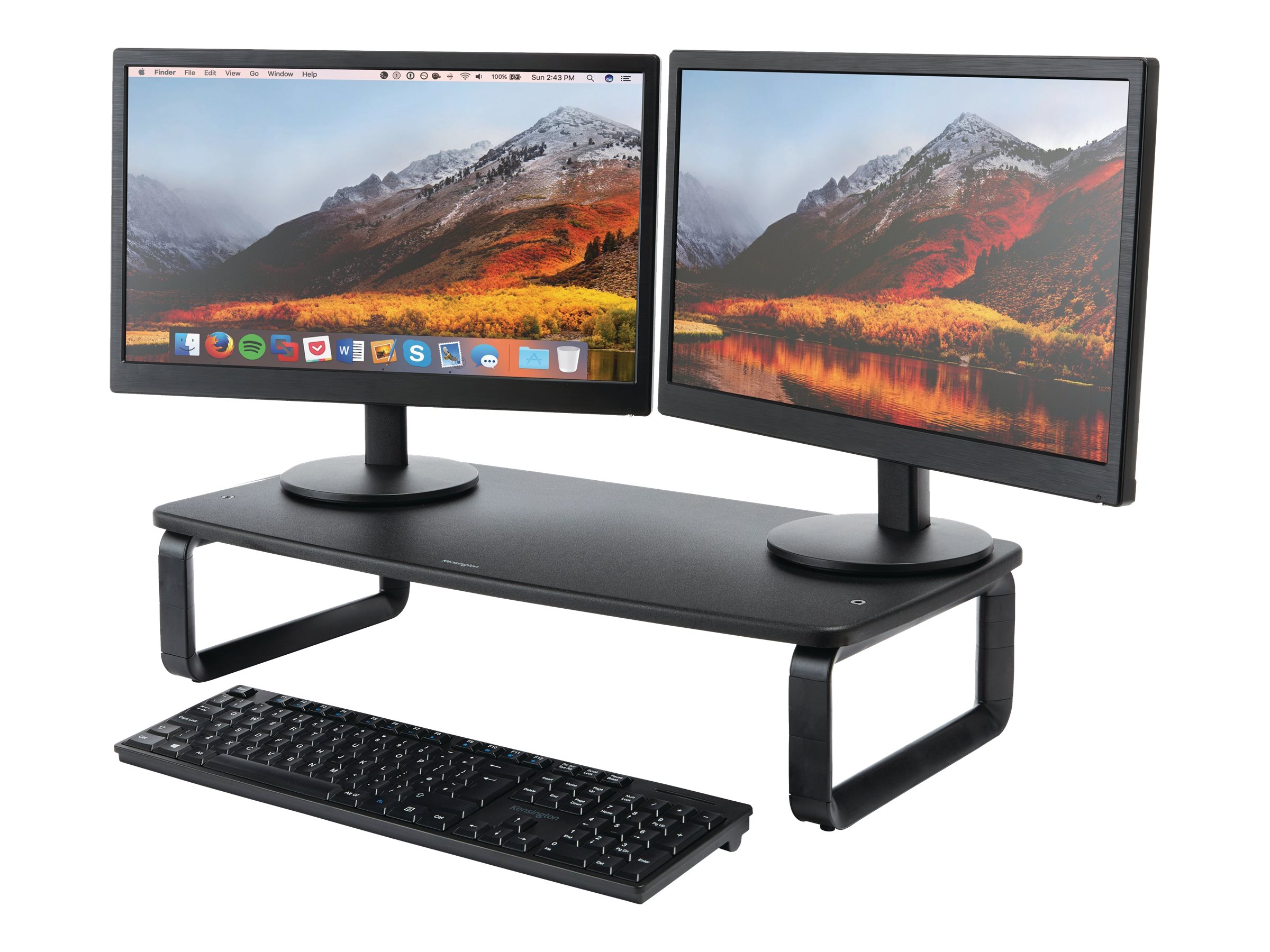 Løft din skærm til den ideelle højde. Kensingtons patenterede SmartFit -system hjælper dig med at placere din skærm til en optimal højde for din nakke, ryg og øjne. Dette ekstra brede stativ til større skærme har 3 højdeindstillinger og inkluderer opbevaringsplads under platformen for at maksimere skrivebordets overfladeareal.
