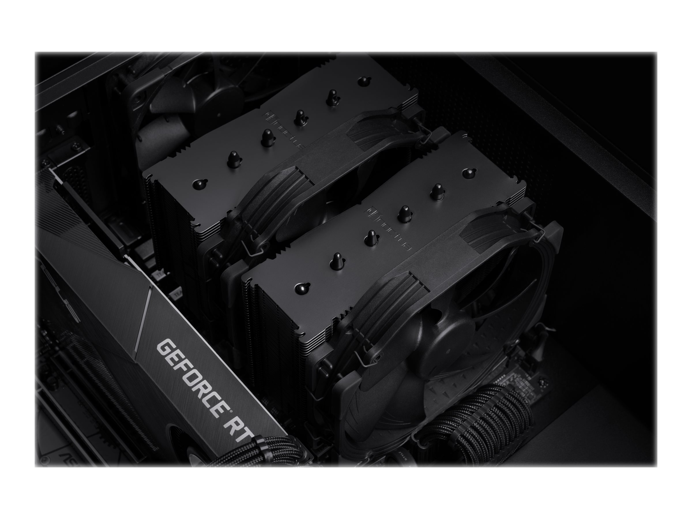 De store NF-A15-blæsere, der strækker sig under fin-stacks, bidrager ikke kun til NH-D15's fremragende CPU-køleegenskaber, men giver også massiv luftstrøm over omgivende bundkortkomponenter og heatsinks, hvilket sikrer fremragende komponentkøling.